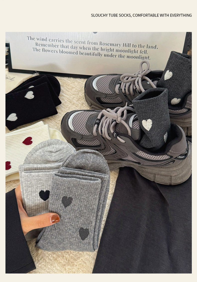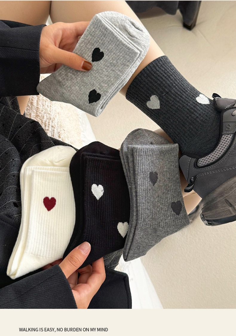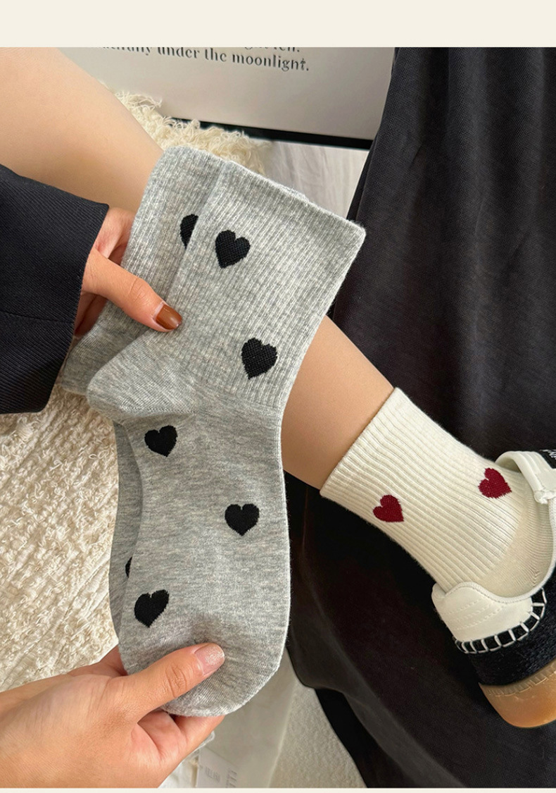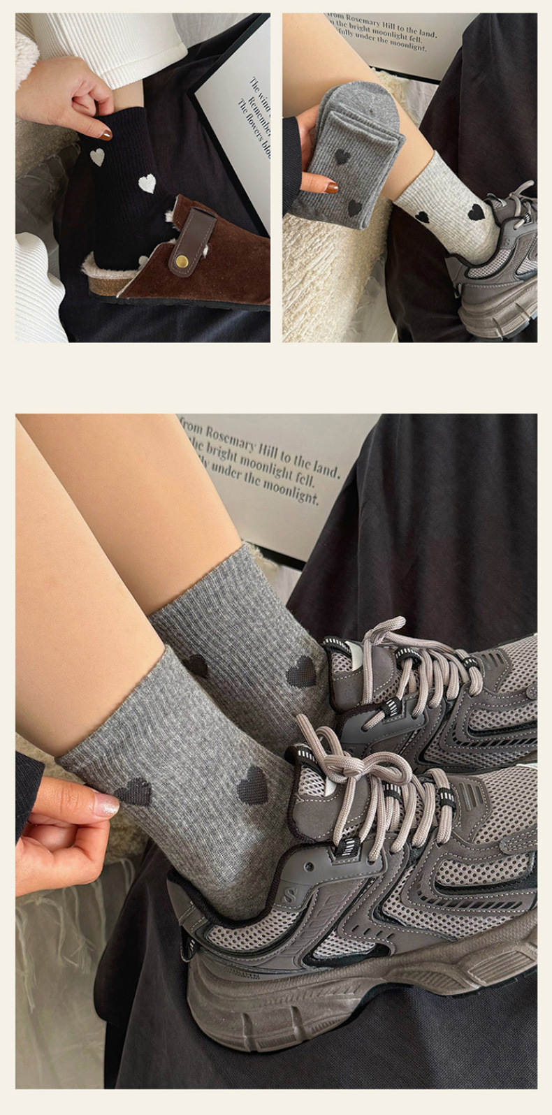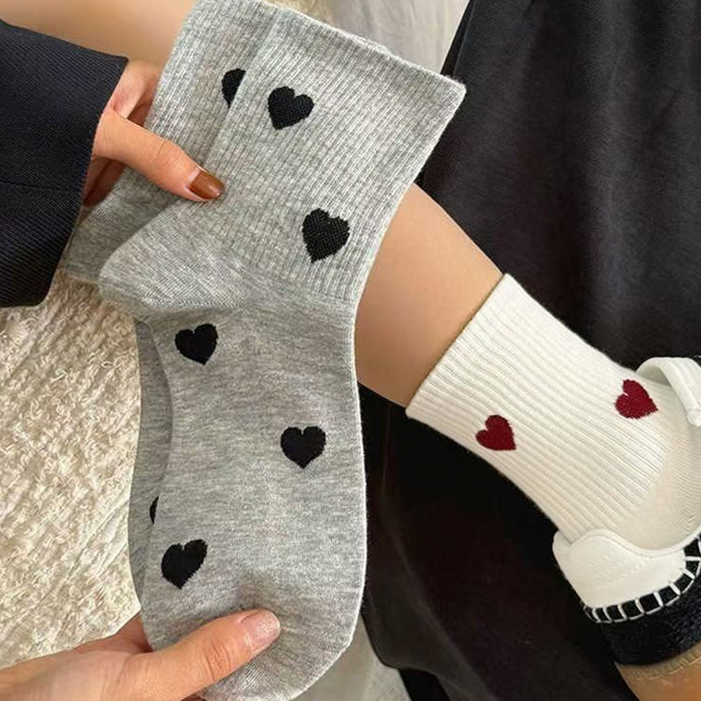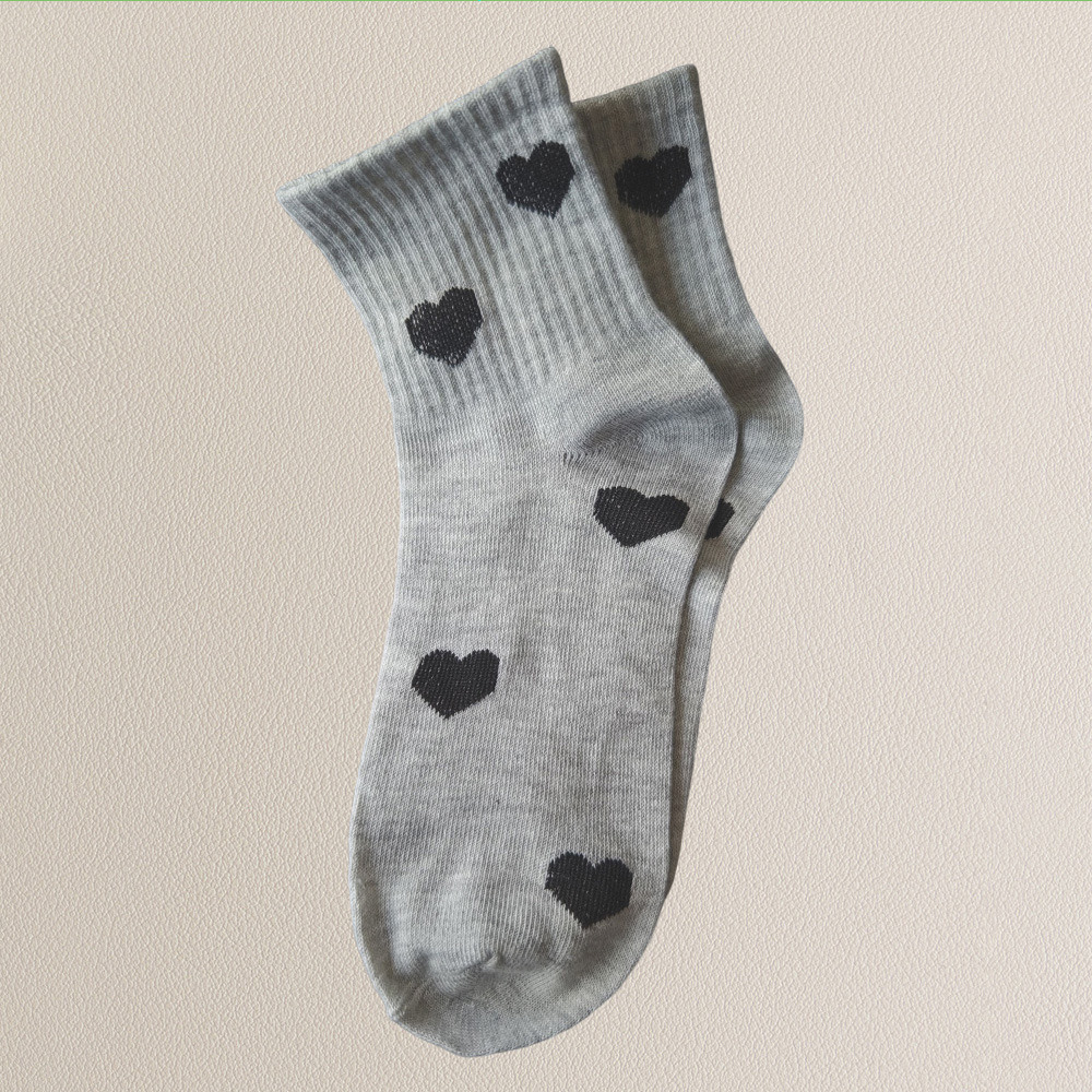 爱心中筒袜子女士批发春夏季学院风纯色运动袜透气船袜长袜诸暨袜