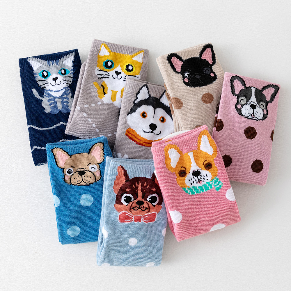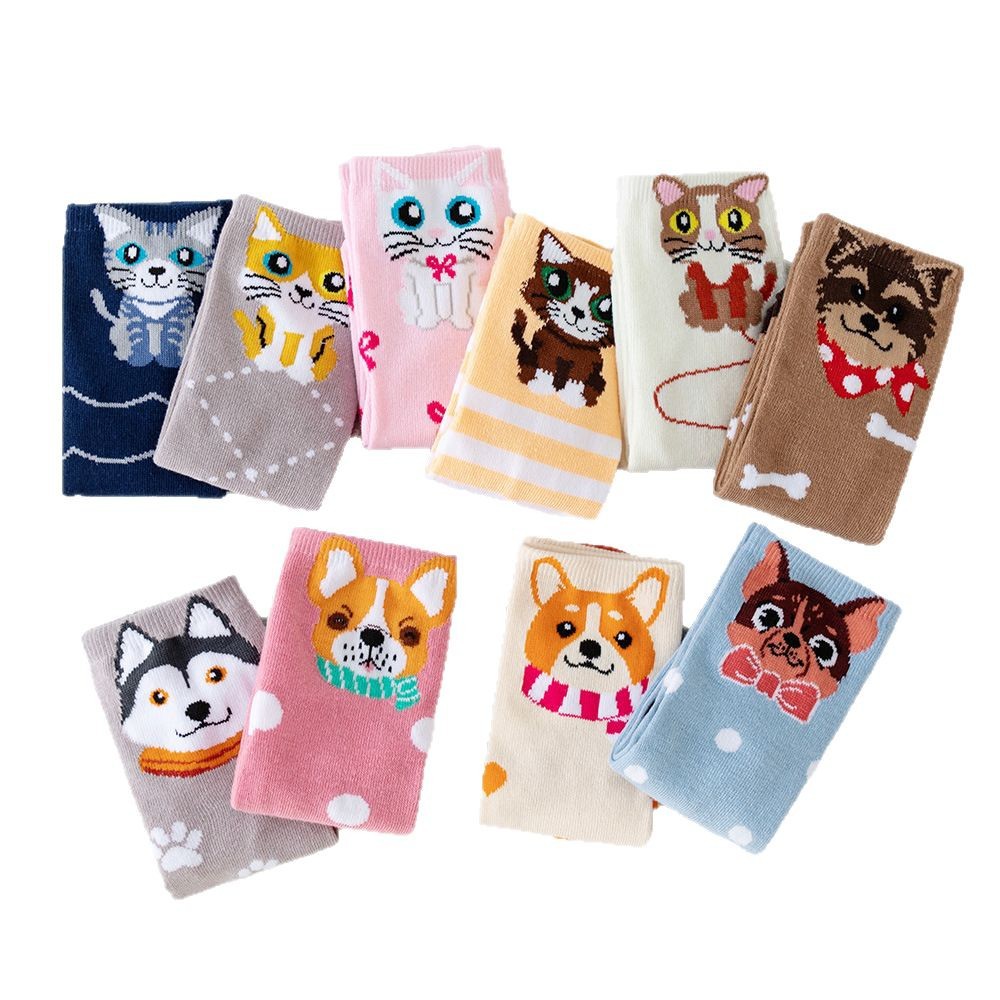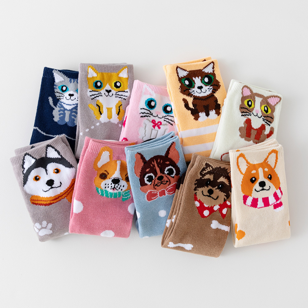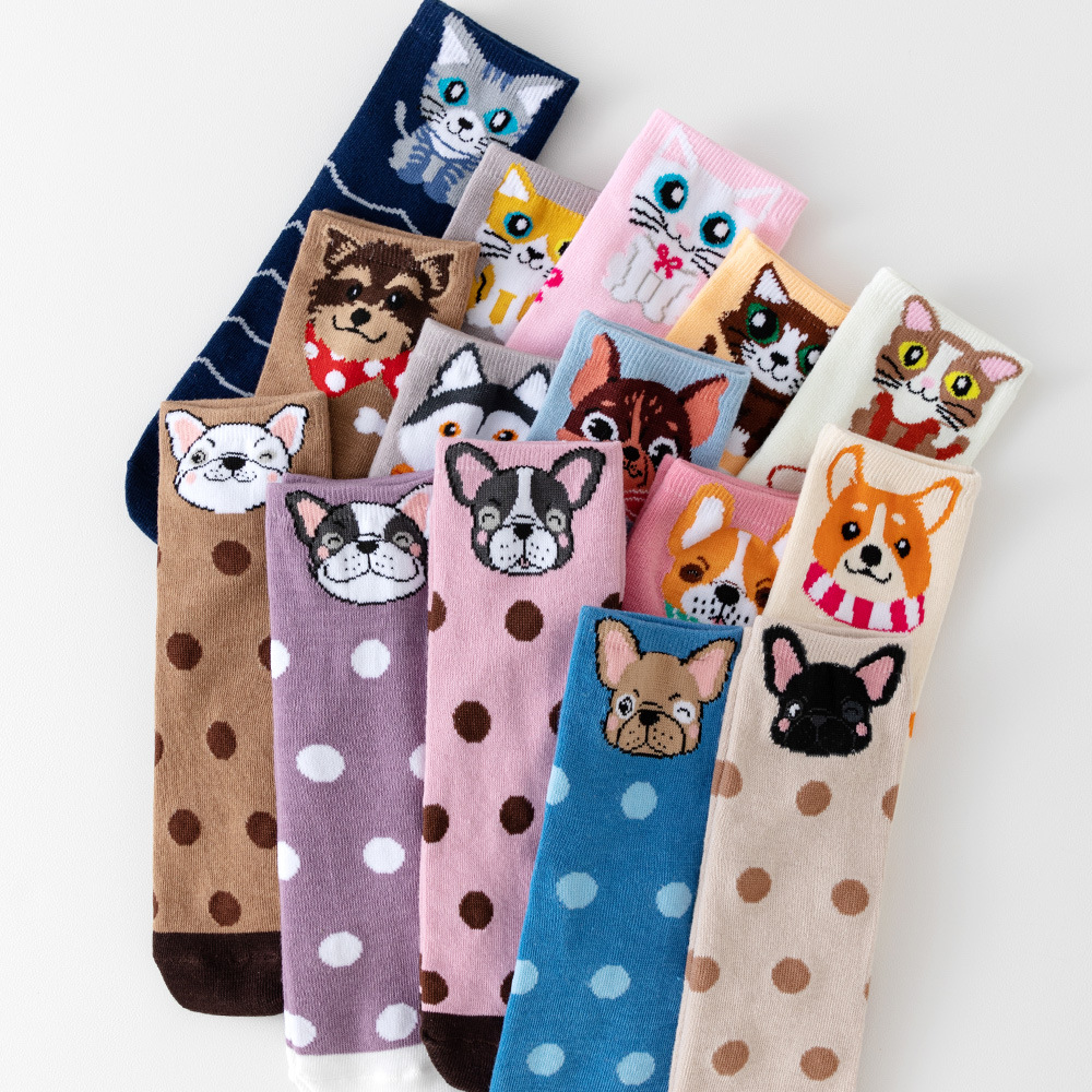 诸暨袜业猫咪小狗运动长袜透气春夏季中筒袜子女士批发亚马逊希音
