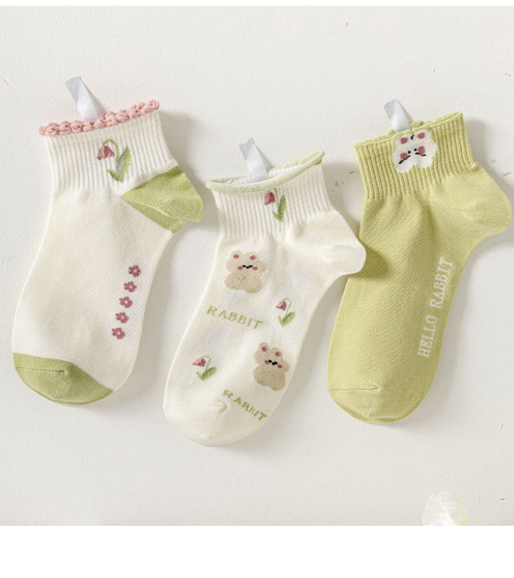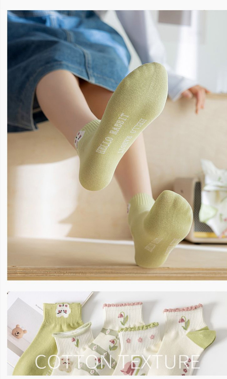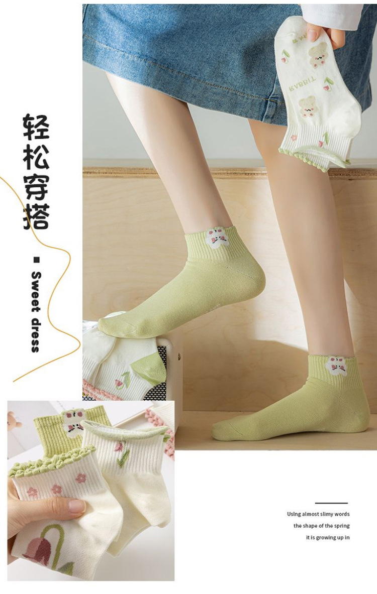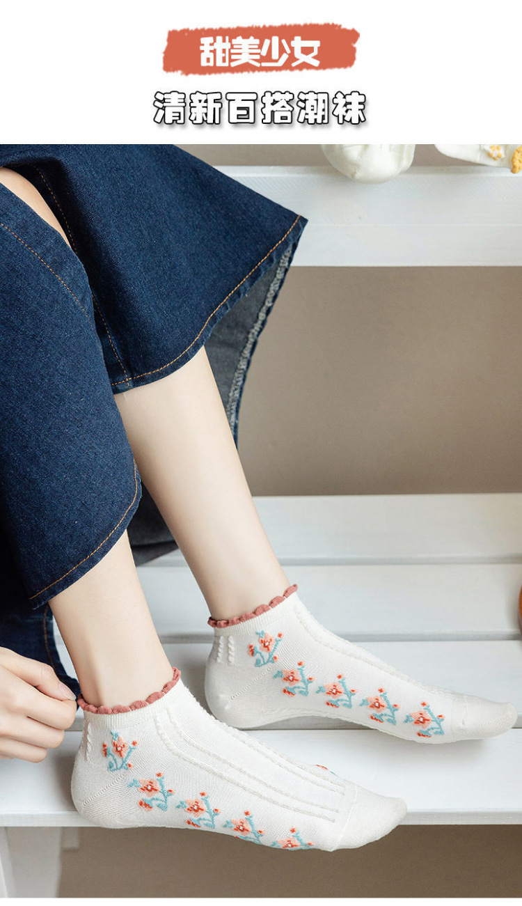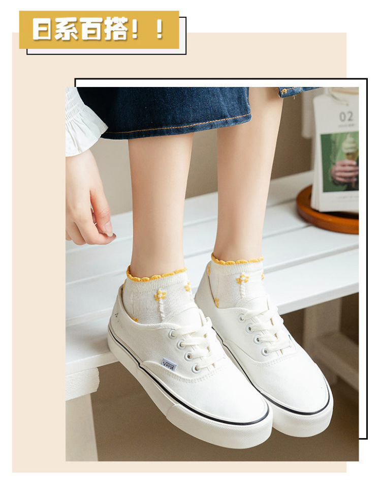 夏跨境外贸棉袜花边袜ins百搭卡通学生短袜批发春秋白色女士船袜