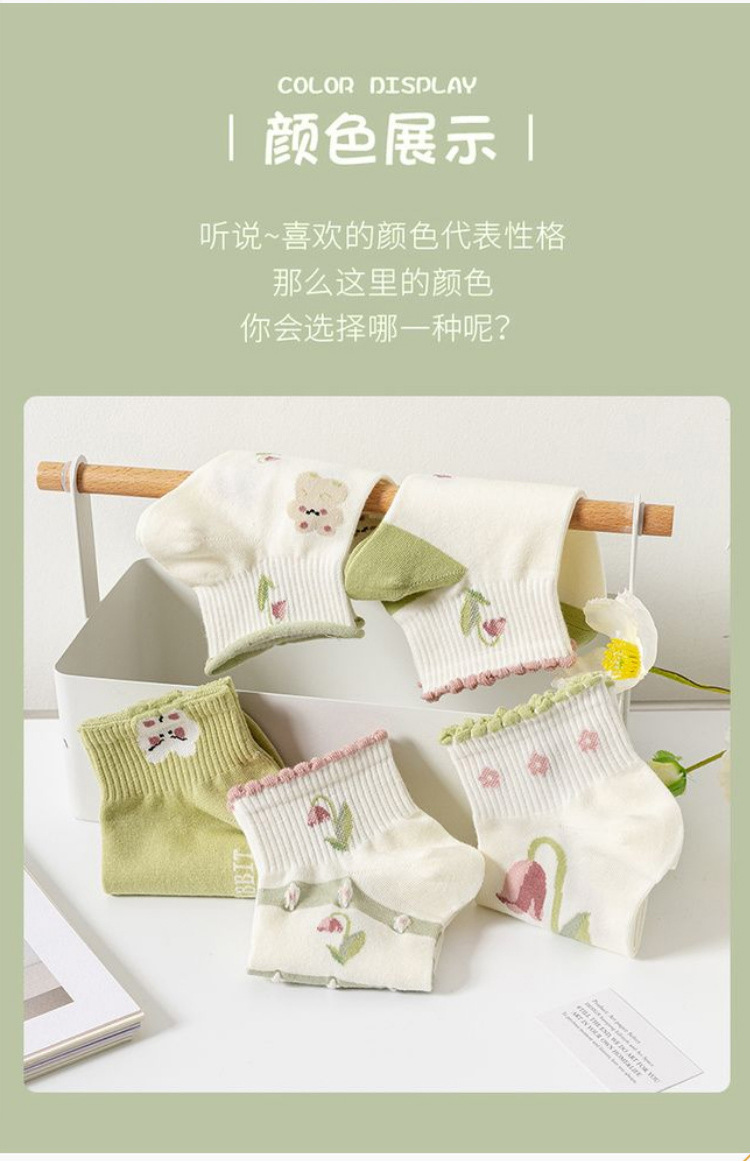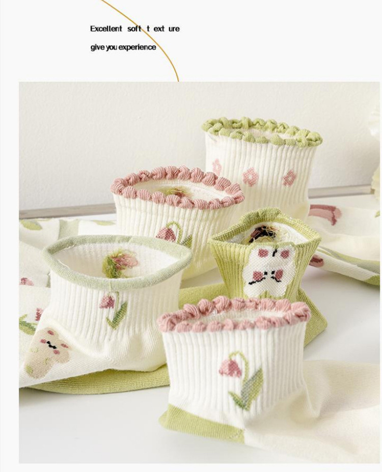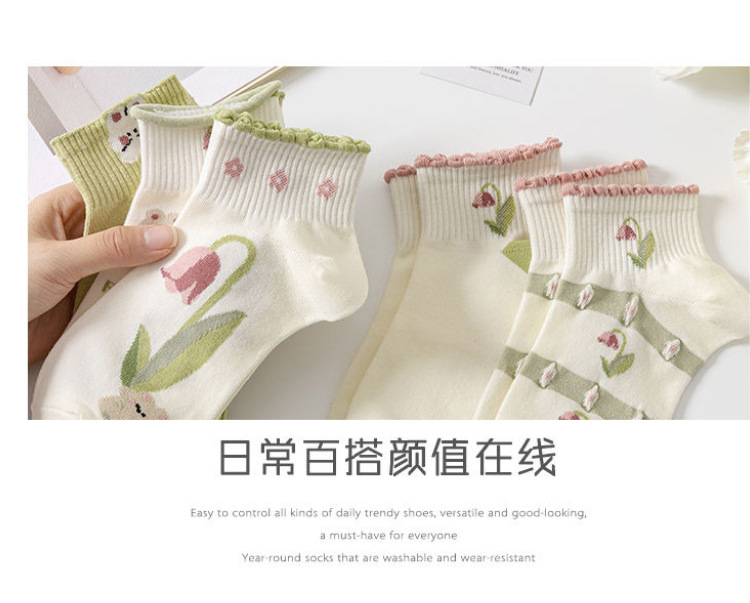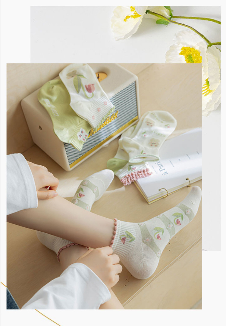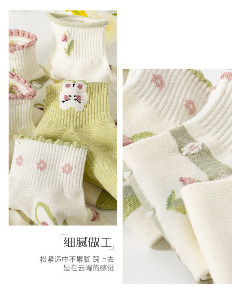 夏跨境外贸棉袜花边袜ins百搭卡通学生短袜批发春秋白色女士船袜