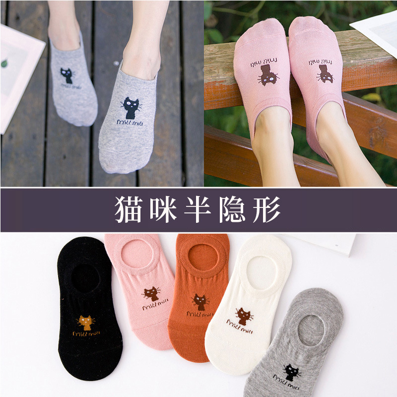 诸暨棉袜吸汗韩版浅口防滑笑脸短袜春秋季卡通隐形船袜子女士批发