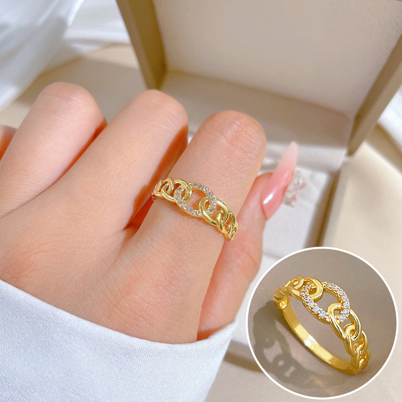 【真金电镀】欧美设计ins风几何镶钻圆珠戒指女冷淡风开口指环