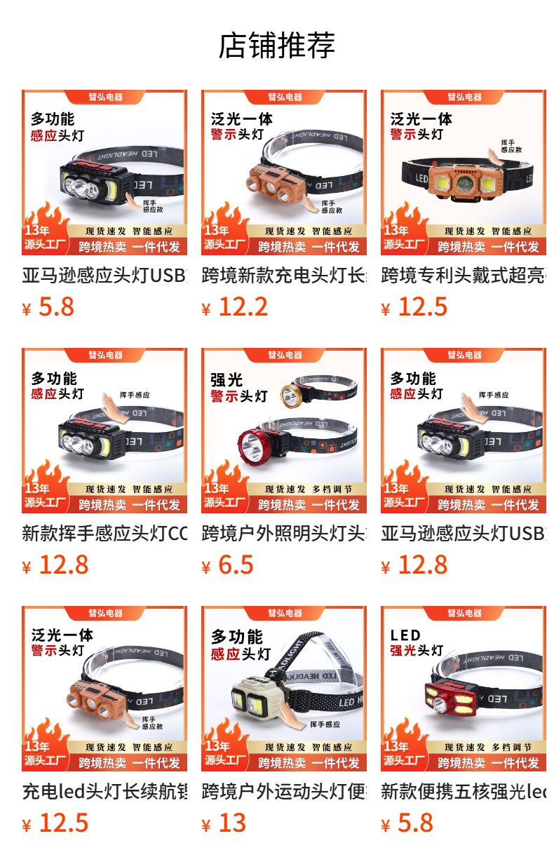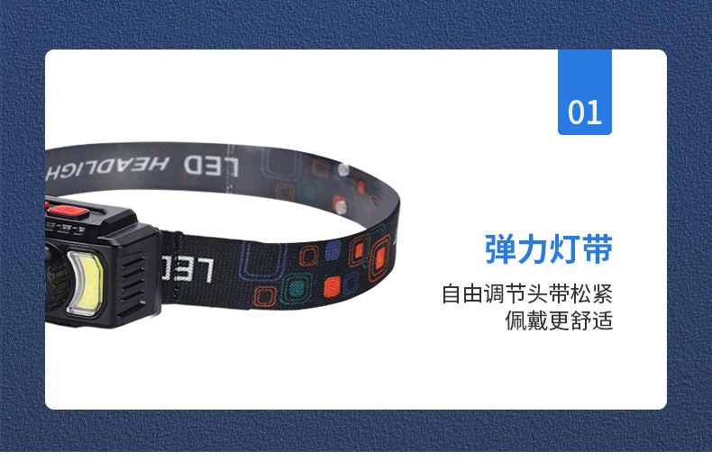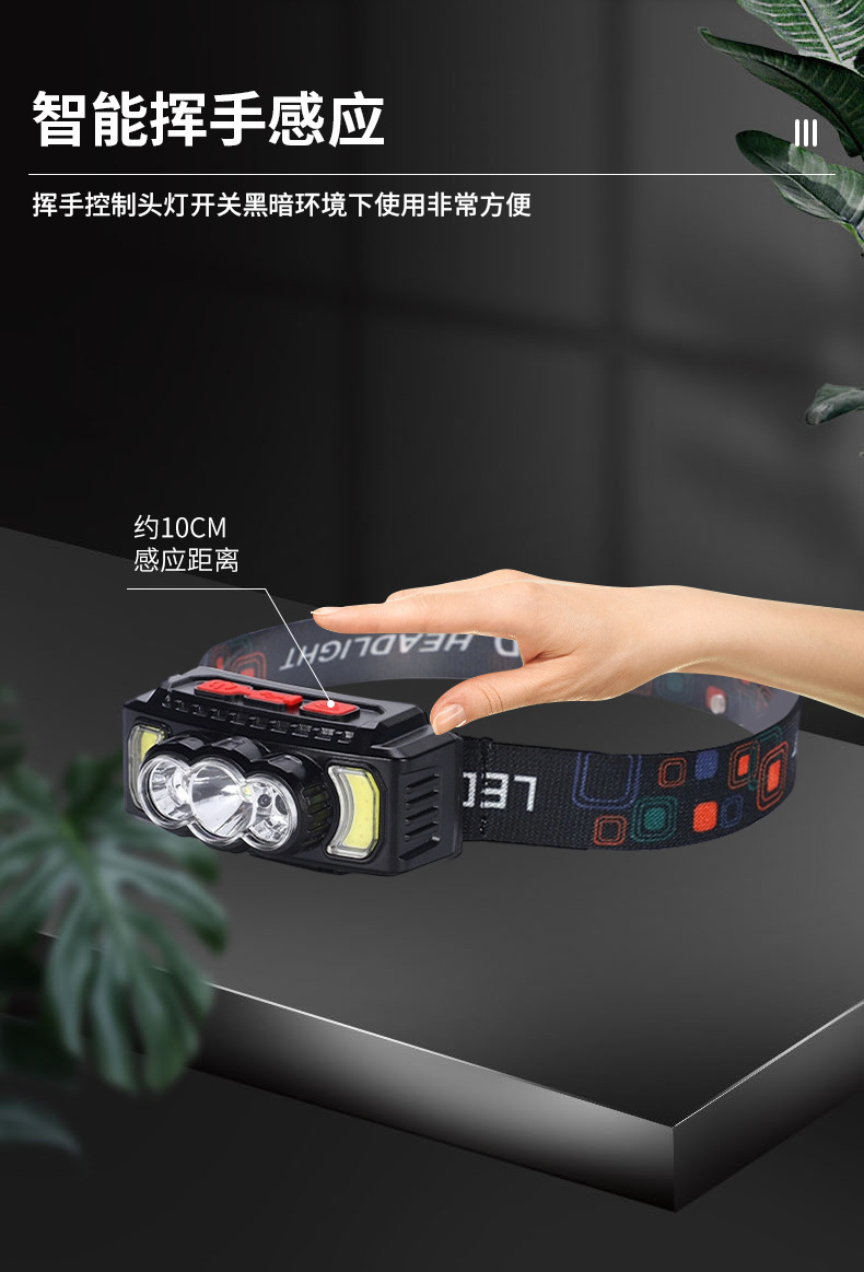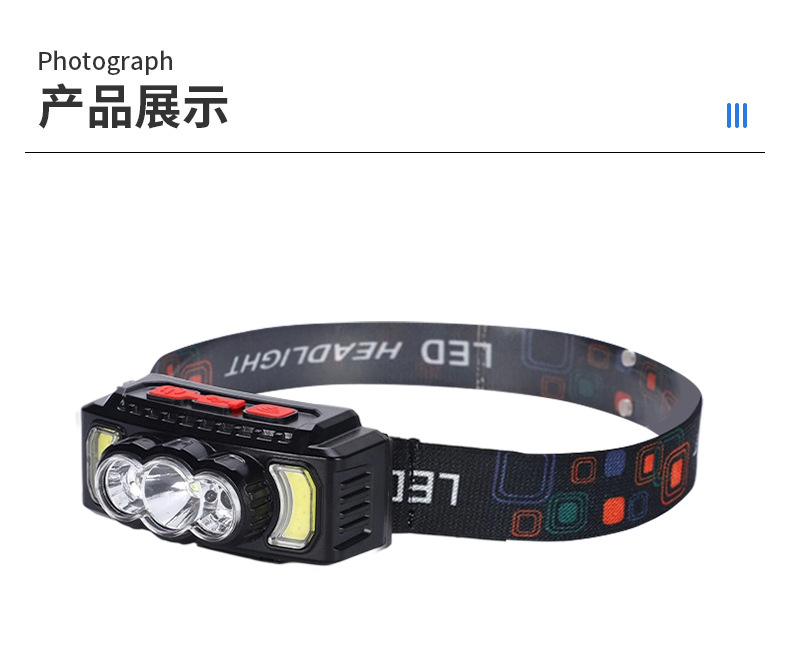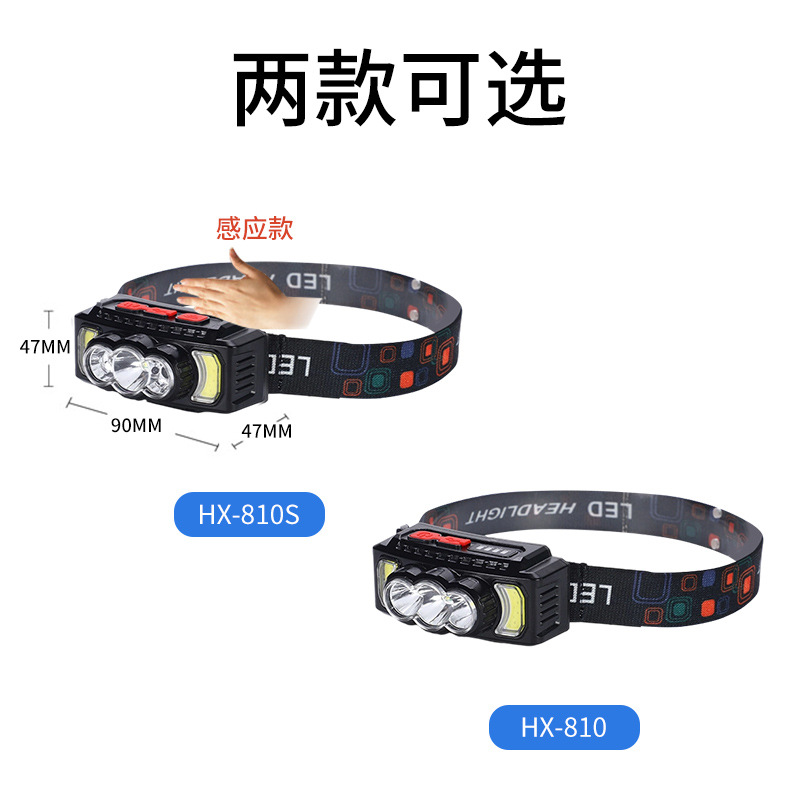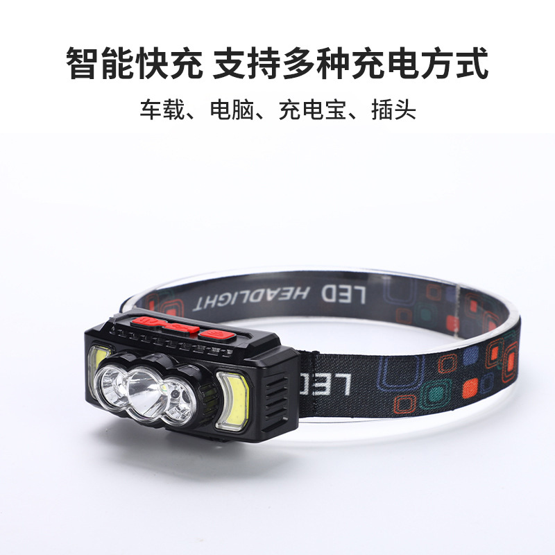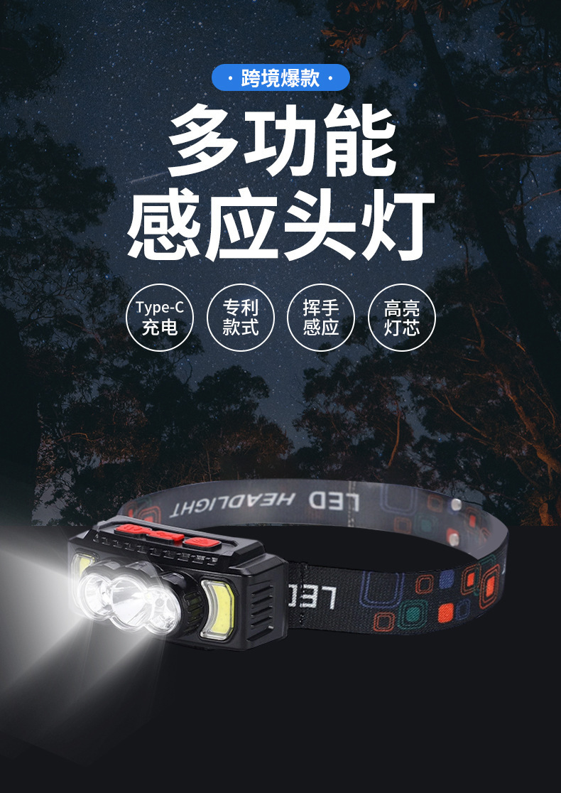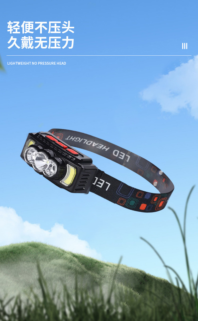 亚马逊感应头灯USB充电COB头灯夜跑户外骑行灯感应强光头戴灯批发