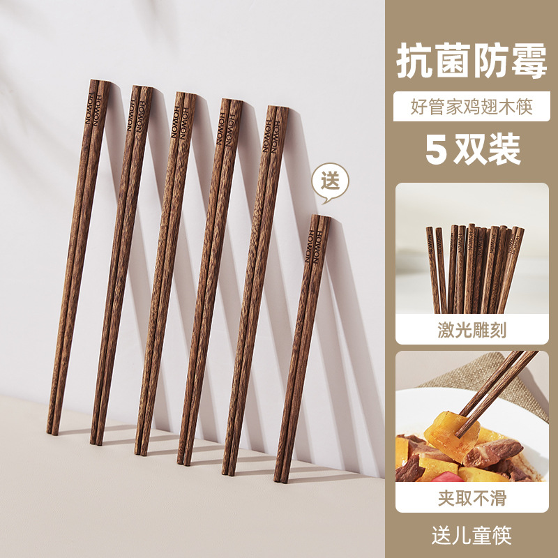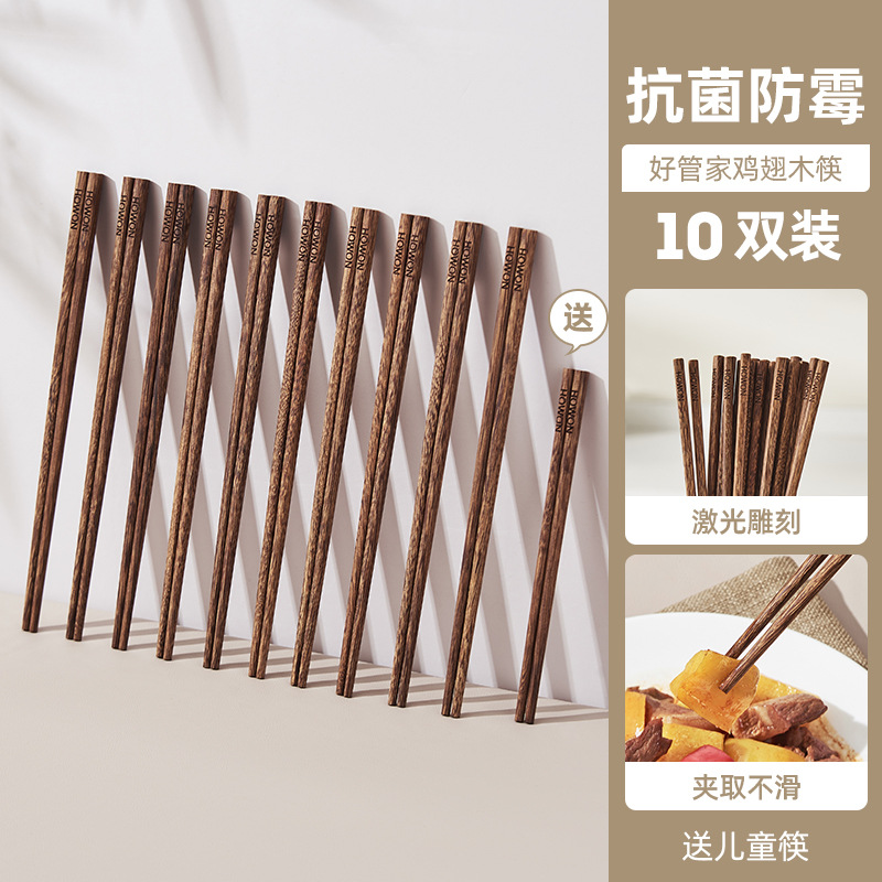 筷子家用高档新款防霉儿童鸡翅木防滑木质加长筷子油炸耐高温