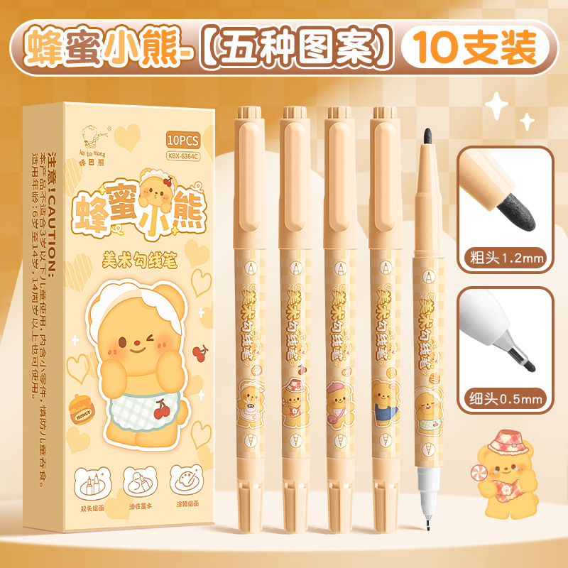 小学生美术绘画书写专用卡通双头黑色大容量防水速干不掉色勾线笔