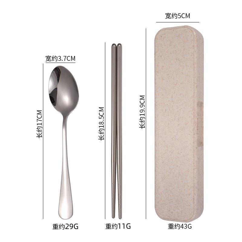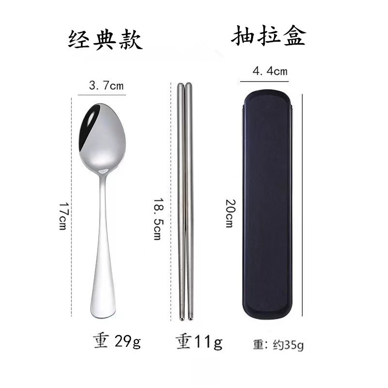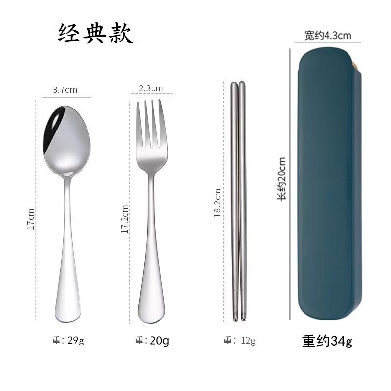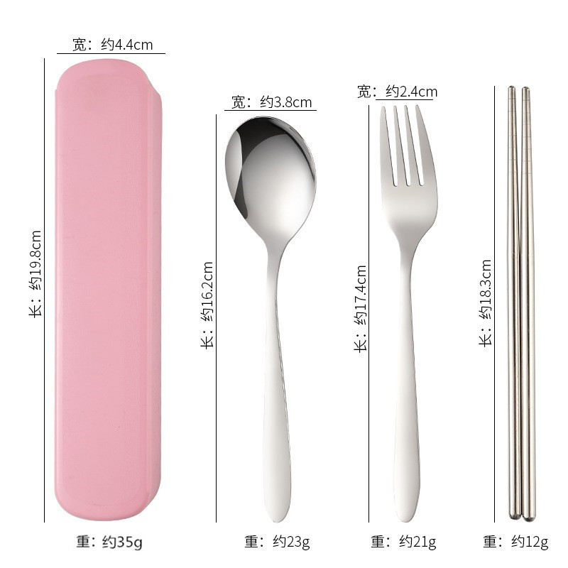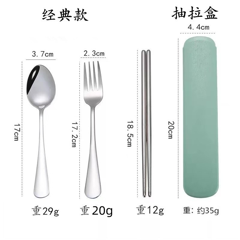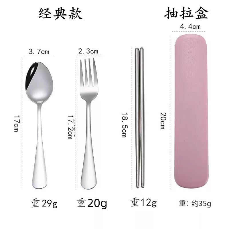 不锈钢餐具三件套学生户外旅行便携收纳盒子叉子勺子筷子套装赠品