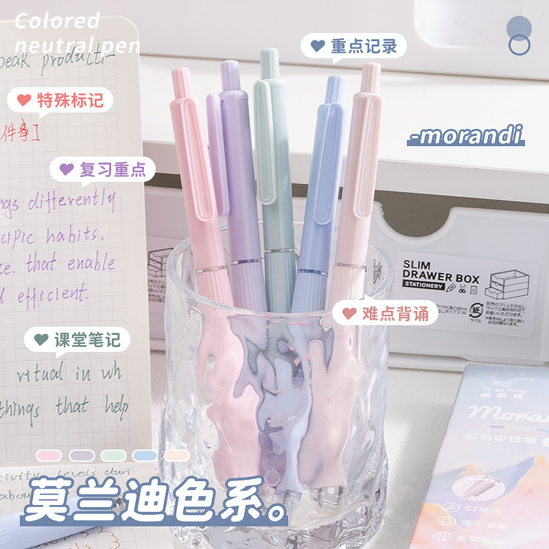 新款彩色中性笔错题修改按动笔小清新记号笔高颜值莫兰迪色手账笔
