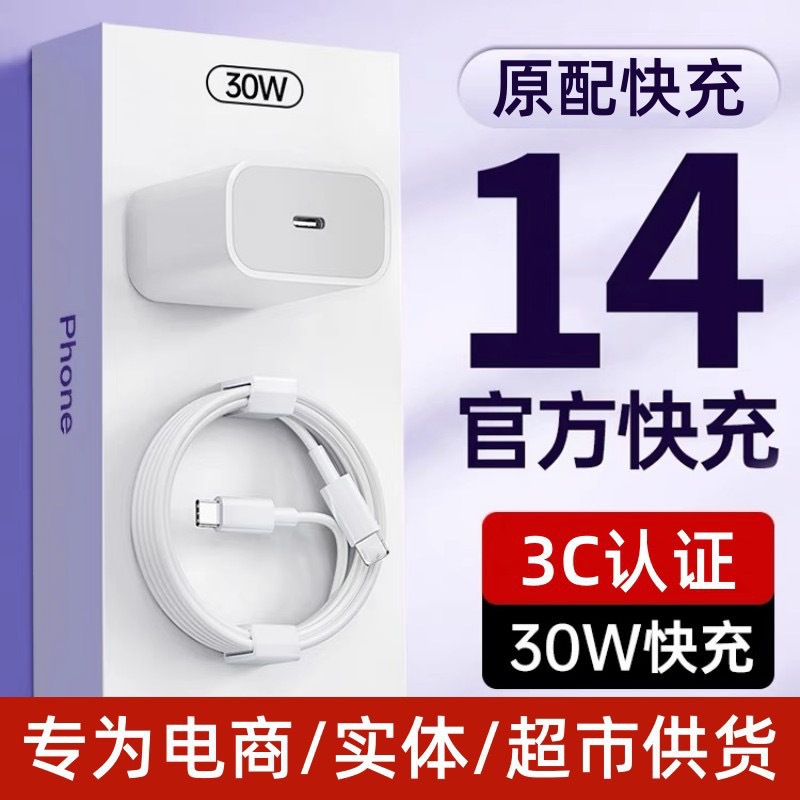 原装快充适用苹果14/15充电器头iPhone16/17双C线20W充头PD30W线