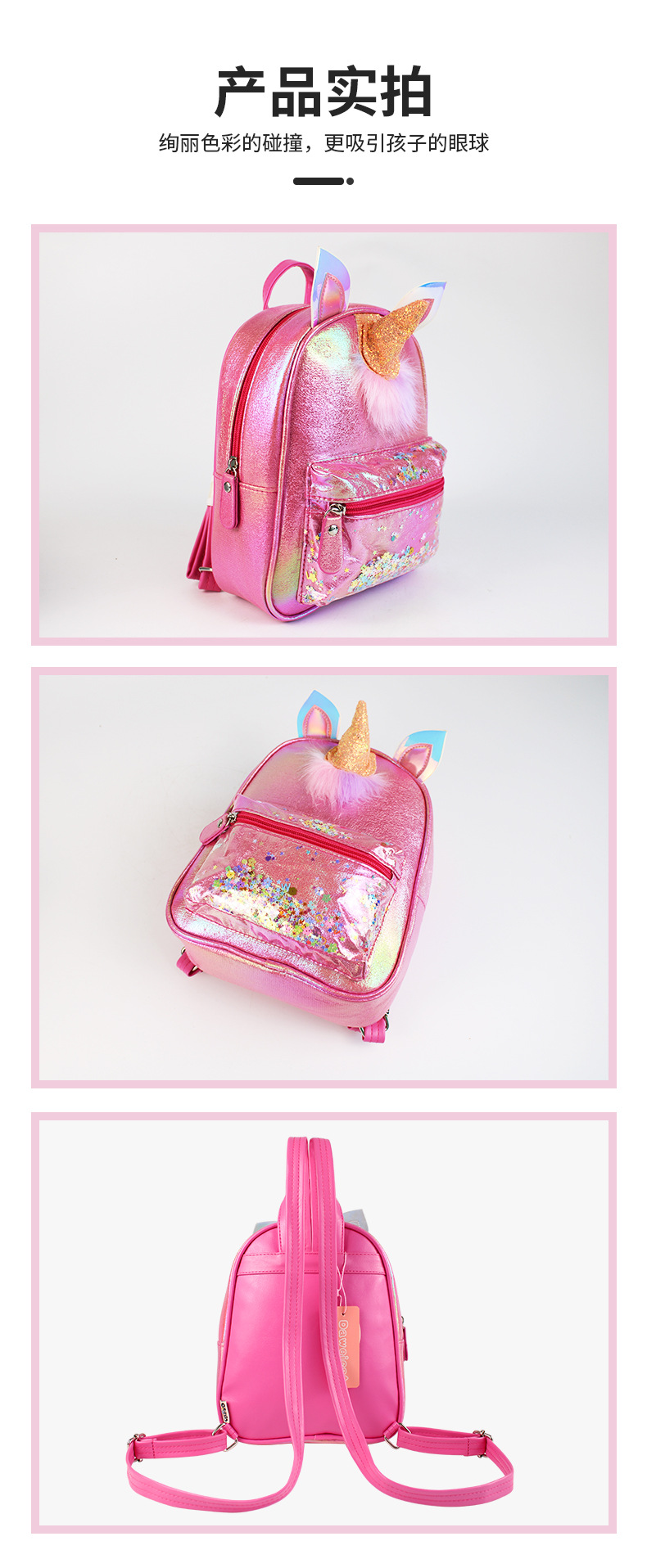 新款亮独角兽儿童双肩包卡通图像爱公主女童时尚可爱儿童双肩包