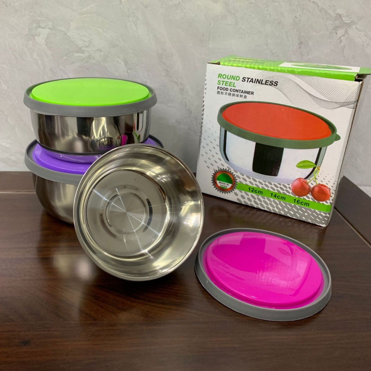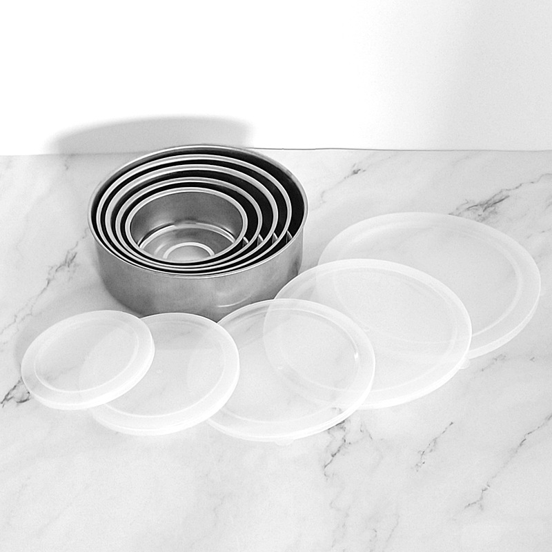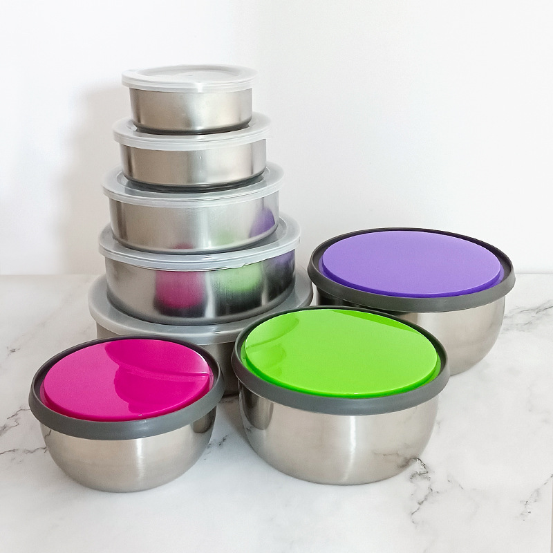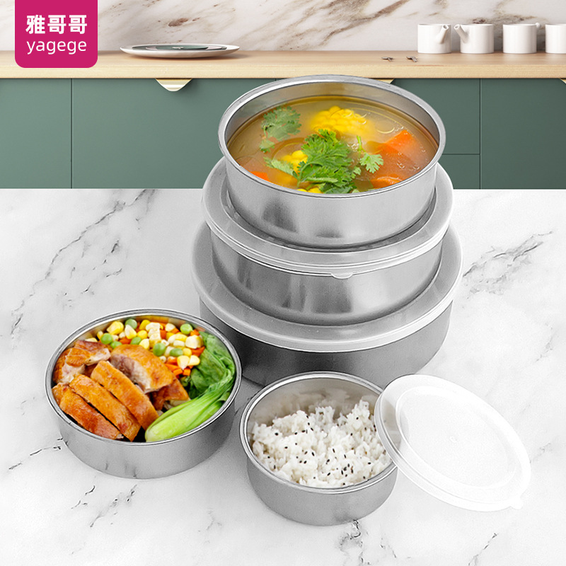不锈钢圆形带盖餐盒保鲜盒套装五件套保鲜碗密封罐储存罐外卖饭盒