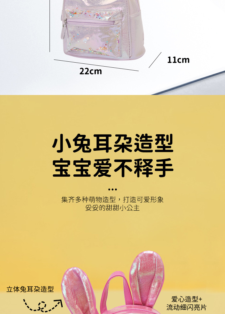 新款亮片儿童潮流双肩包兔子卡通蝴蝶结公主女童时尚可爱儿童包包