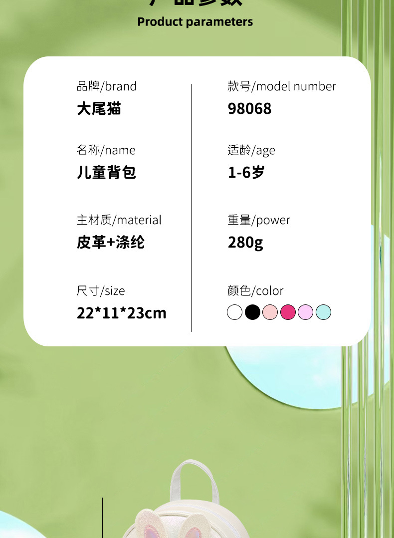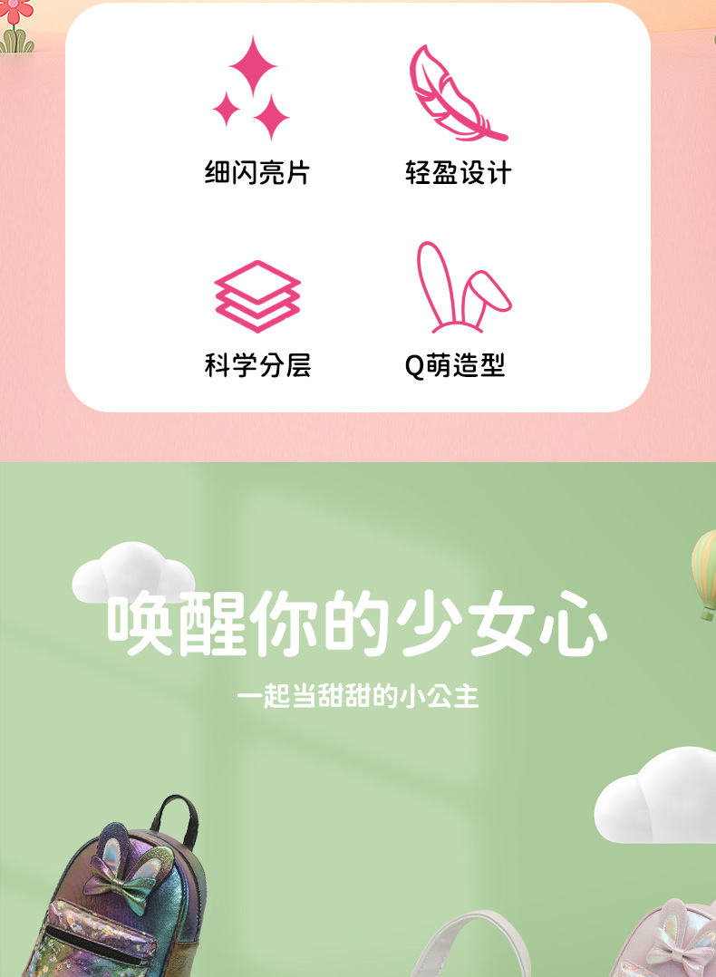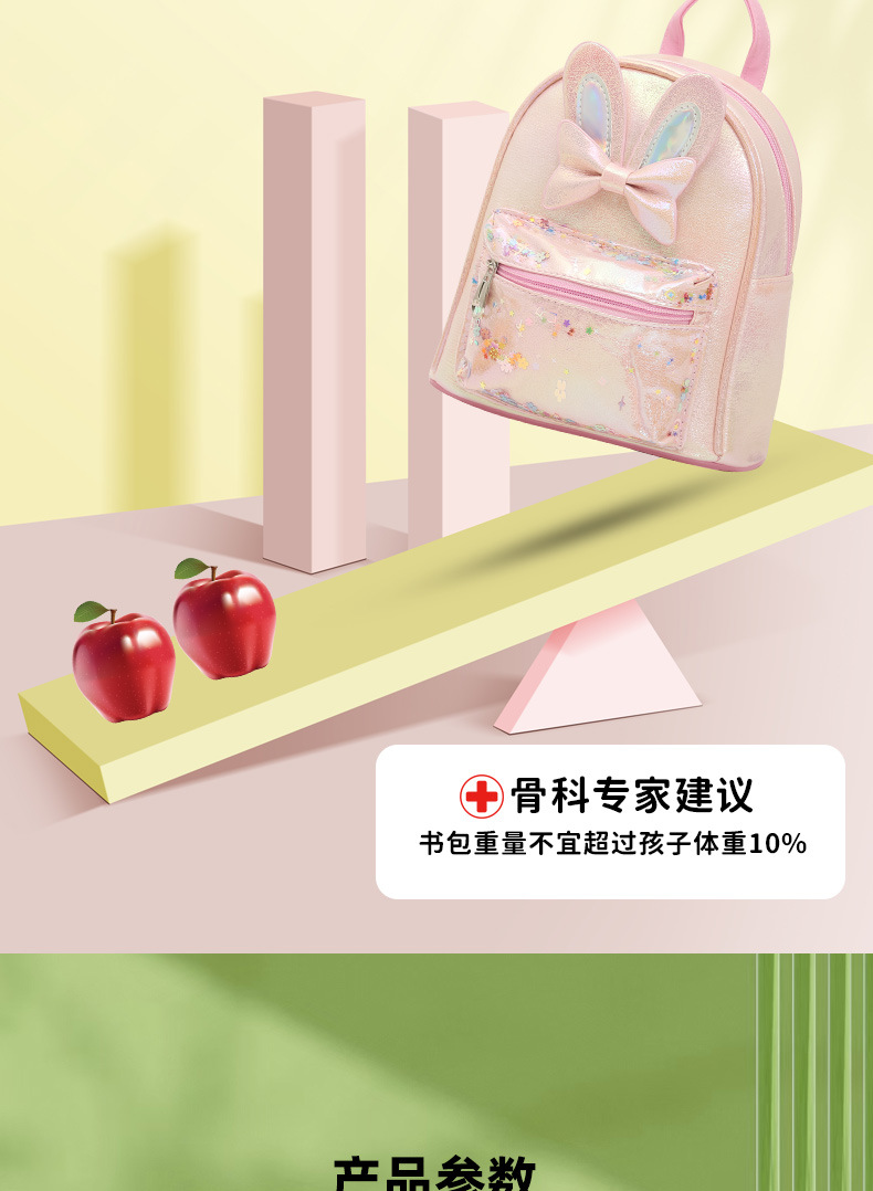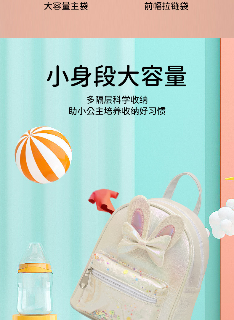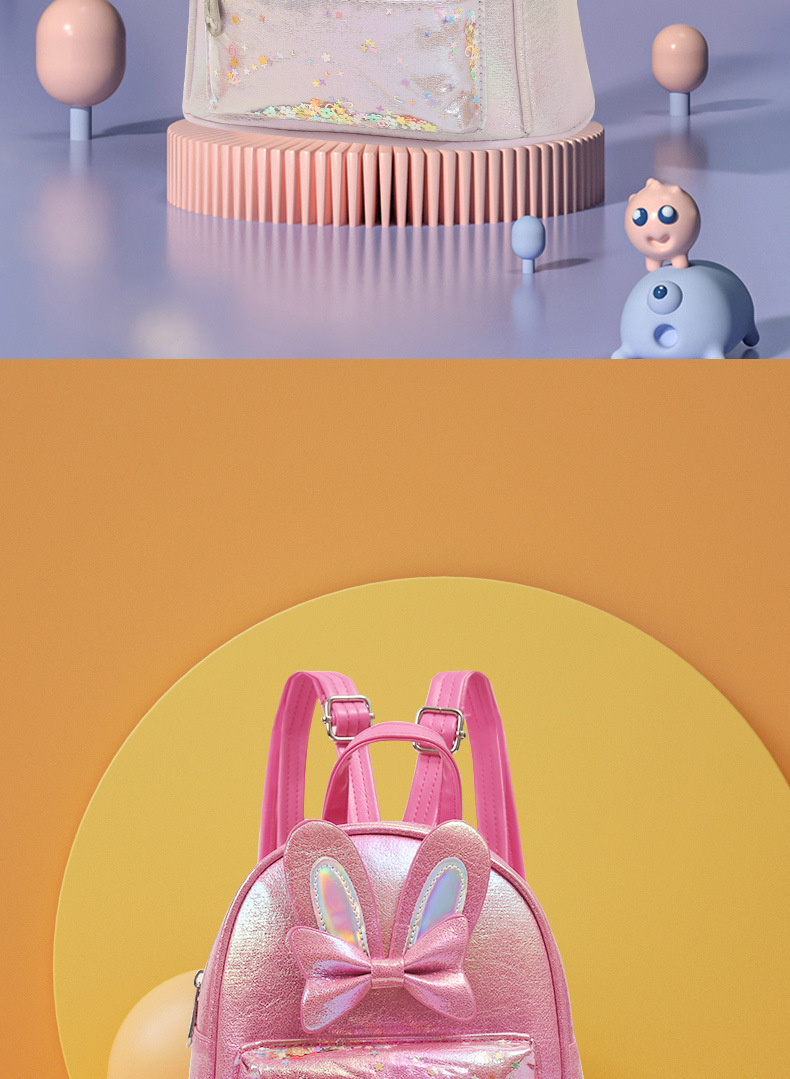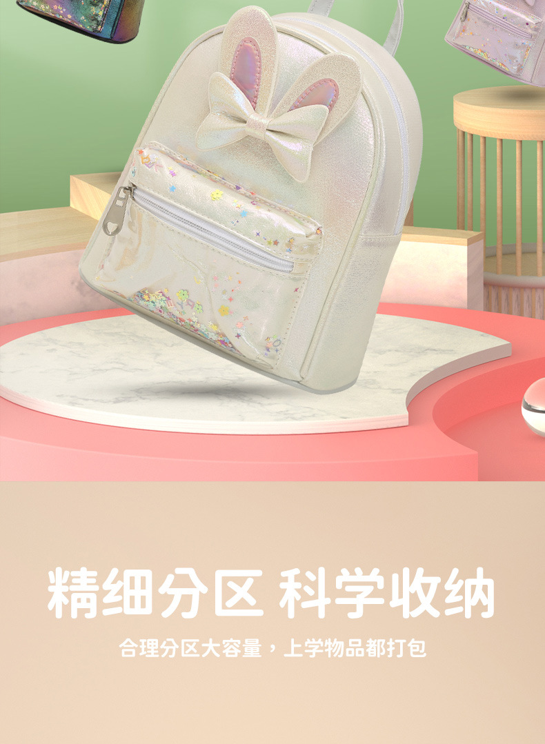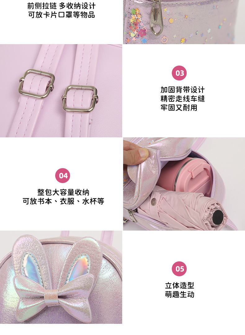 新款亮片蝴蝶结兔子儿童双肩包卡通图像女童时尚可爱儿童潮流双肩