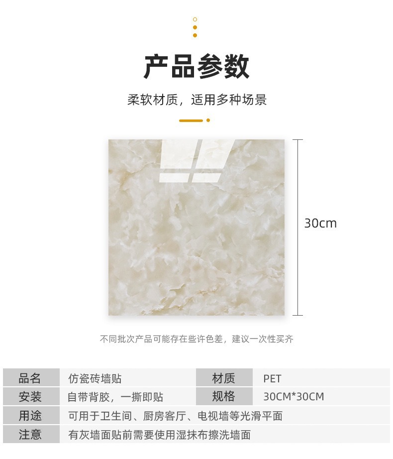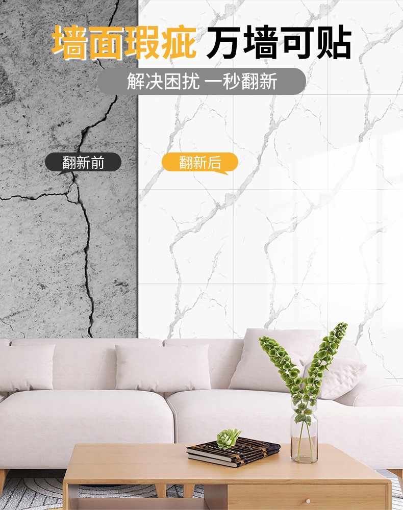 大理石墙贴自粘仿瓷砖墙贴纸卫生间客厅遮丑墙板防水防潮墙纸跨境