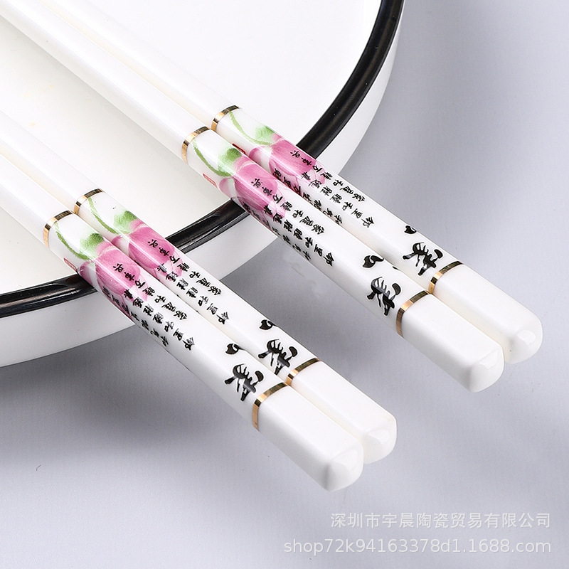 陶瓷筷子家用餐厅环保健康耐高温易清洗不发霉高颜值骨质餐具中式
