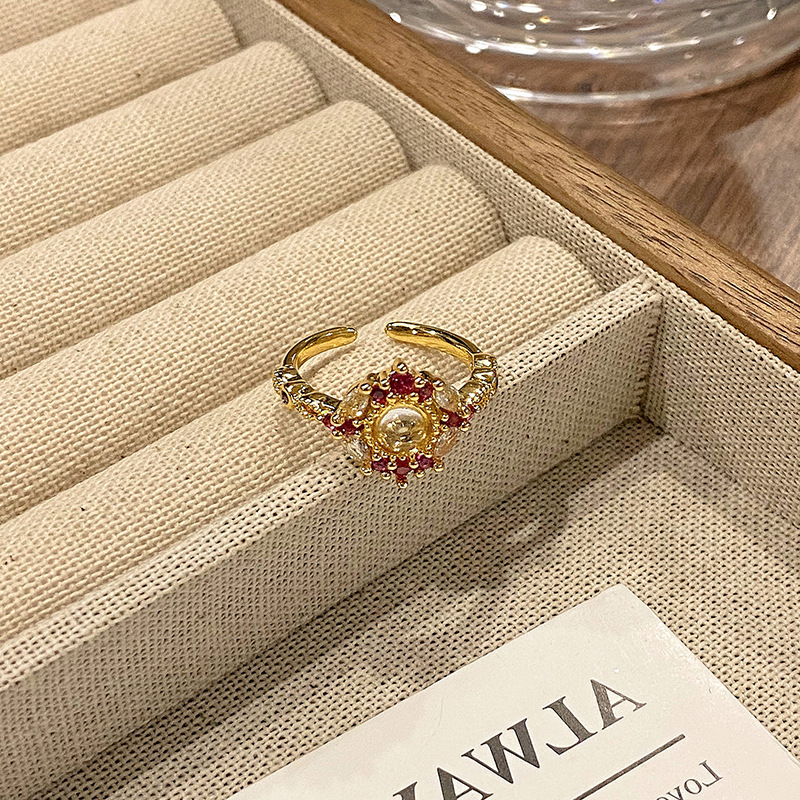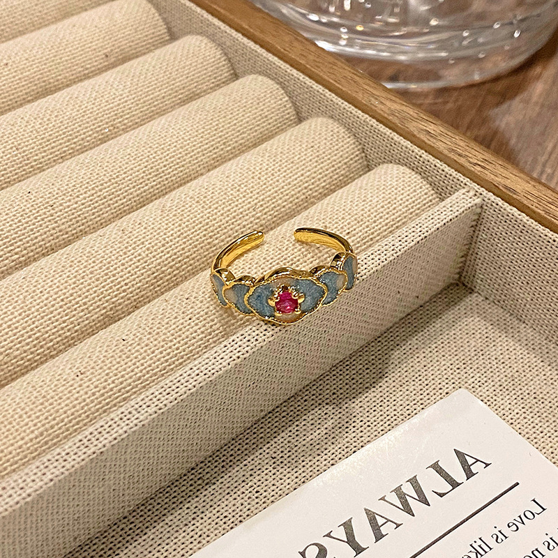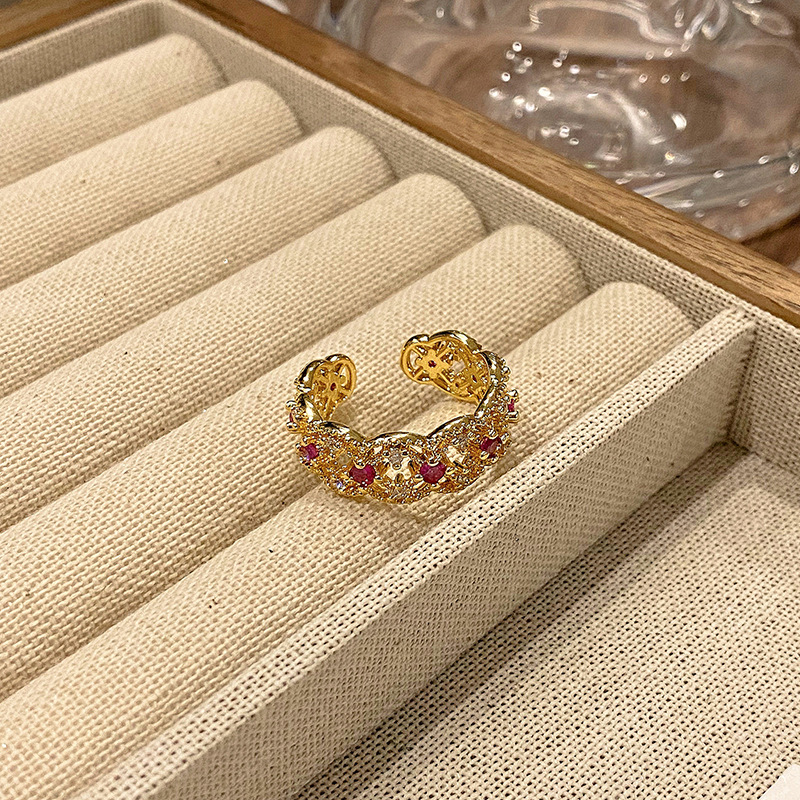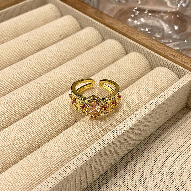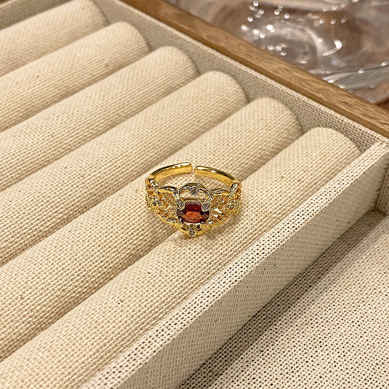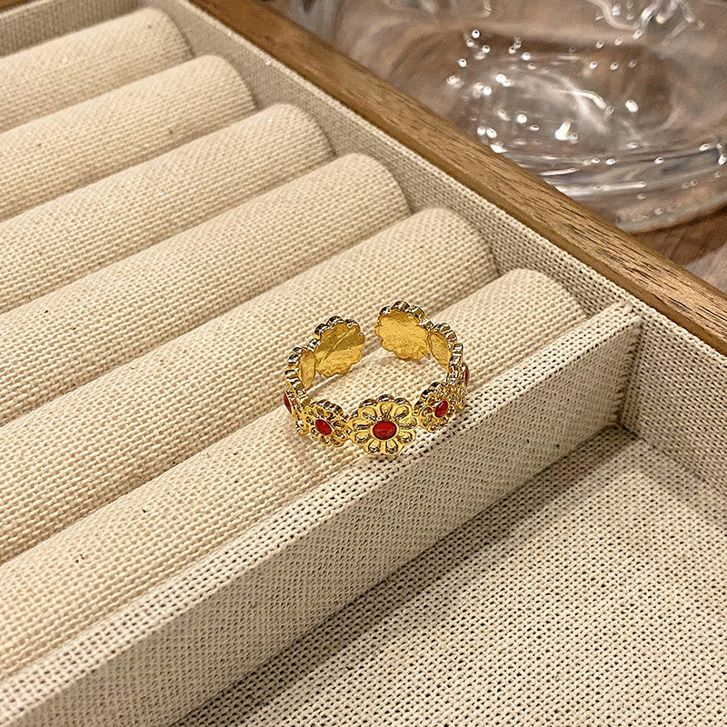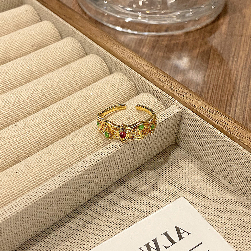 中古风vintage~高级质感复古花纹宽版戒指女式小众设计轻奢可调节