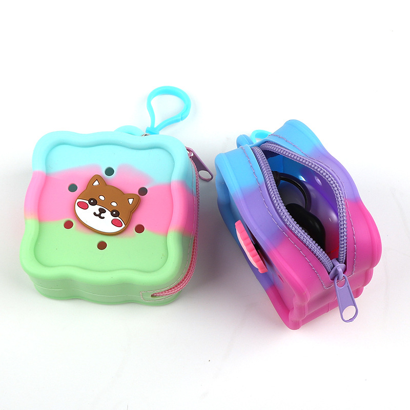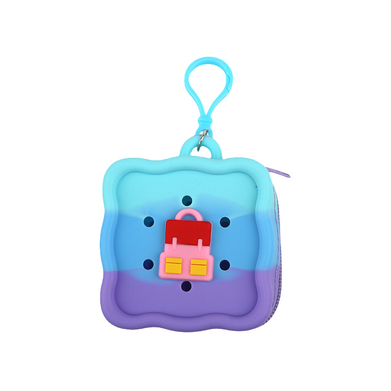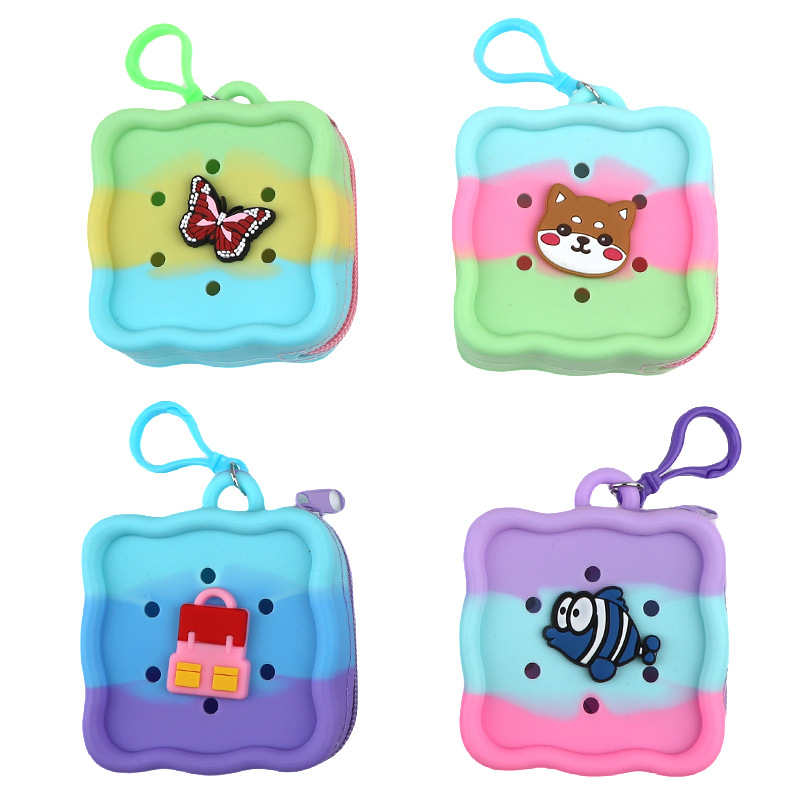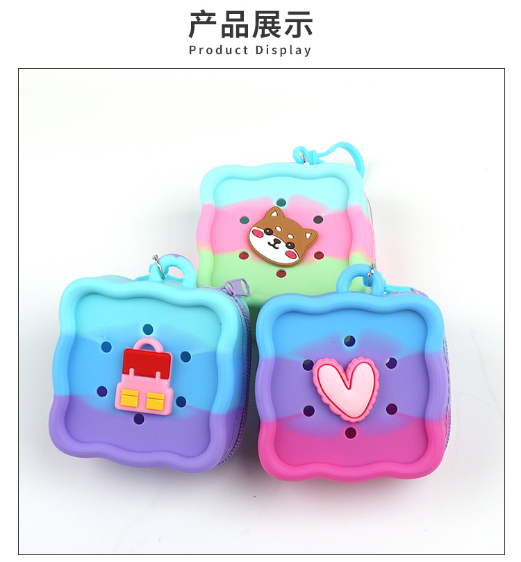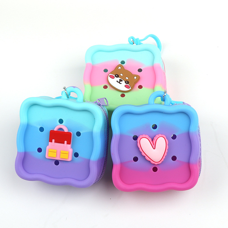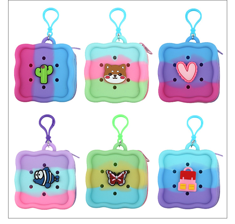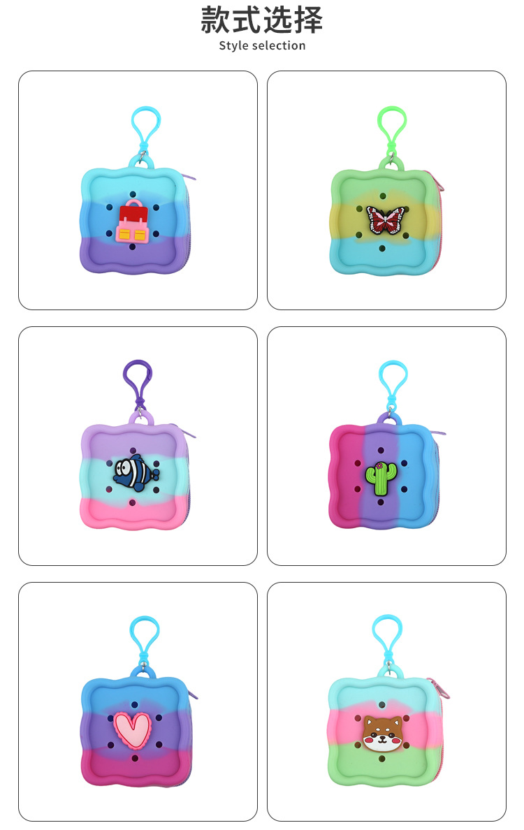 儿童彩虹硅胶包学生零钱包卡包大包包挂件DIY洞洞包情侣耳机包