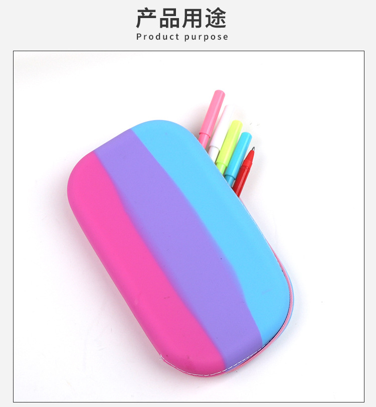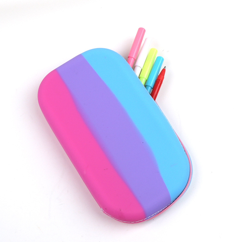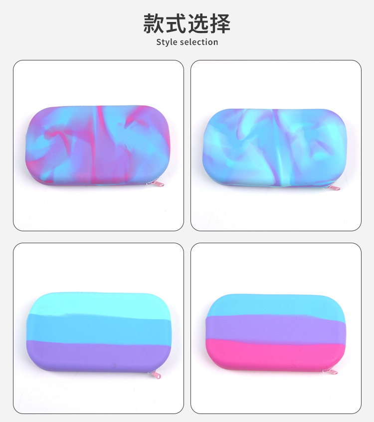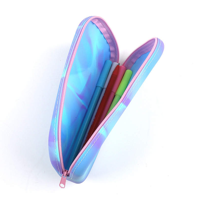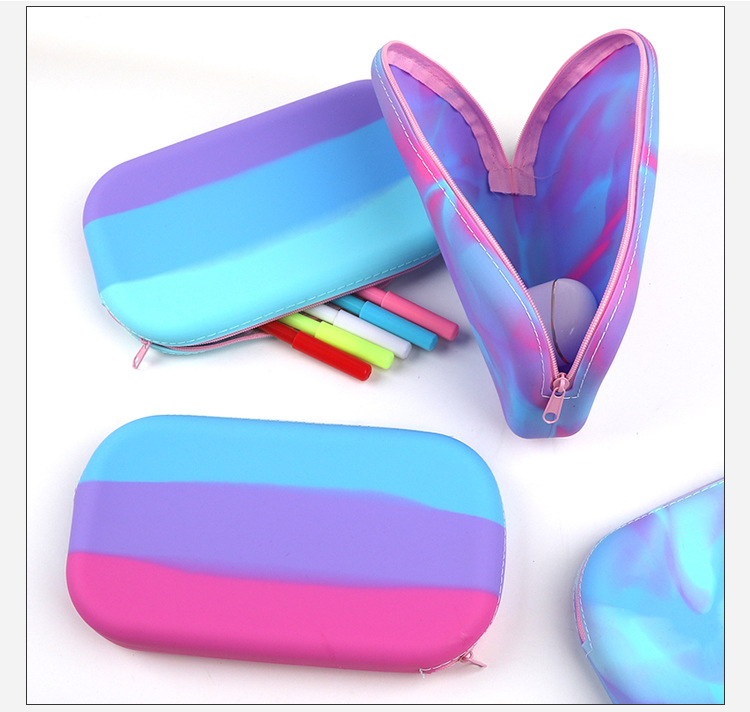 跨境创意硅胶笔袋大容量简约学生铅笔盒扎染色长方文具收纳袋