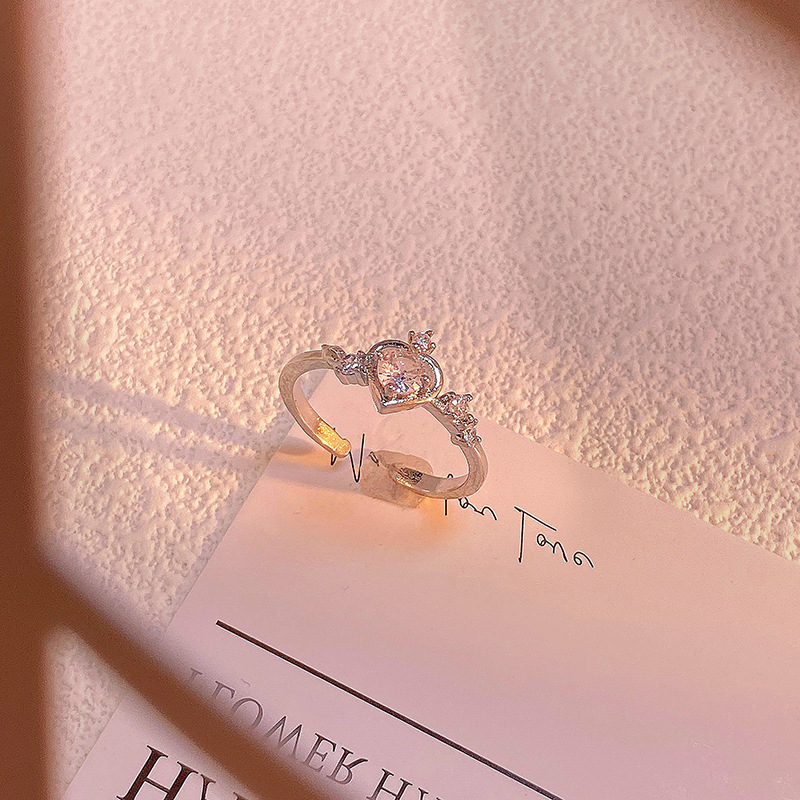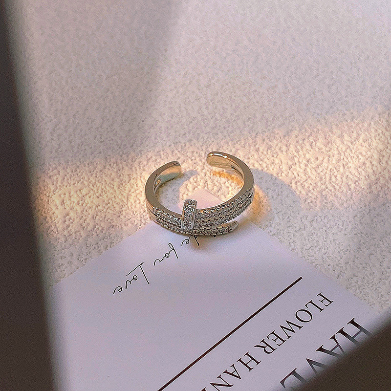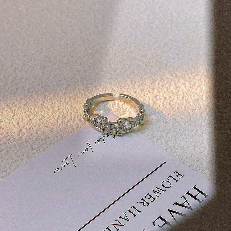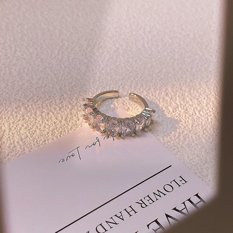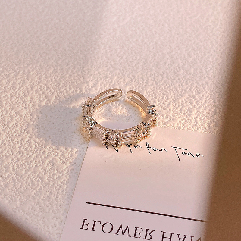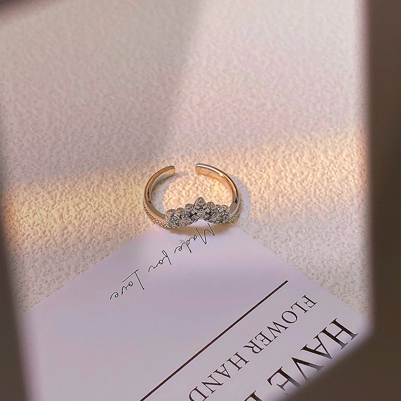 精致满钻锆石素圈皇冠开口戒指女气质百搭时尚食指戒冷淡风指环潮