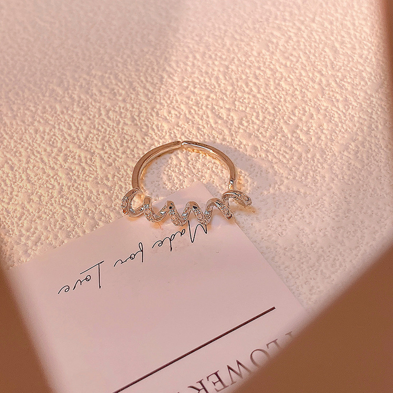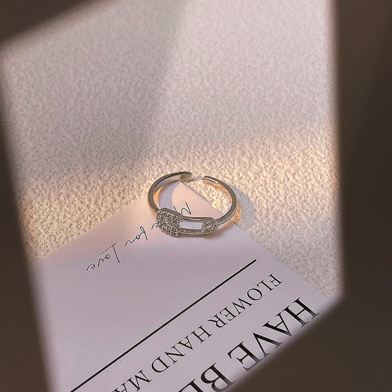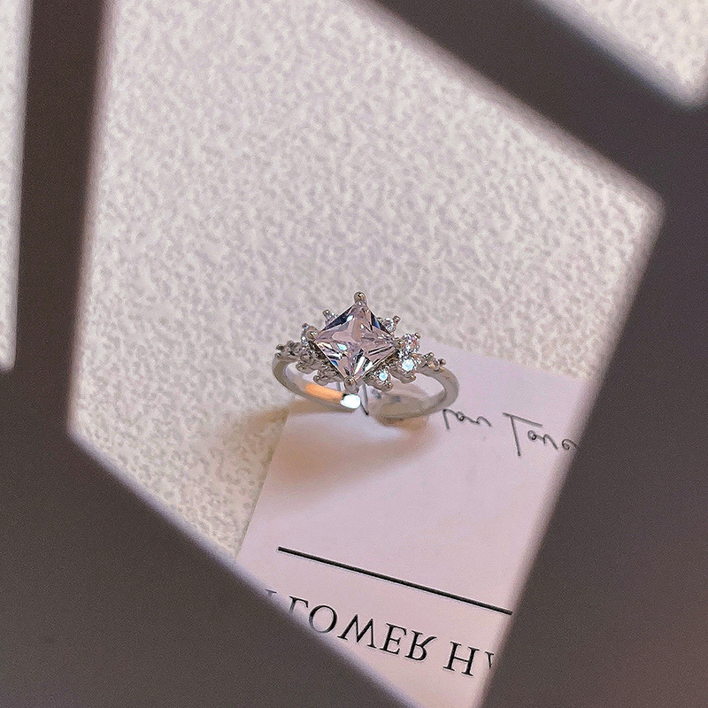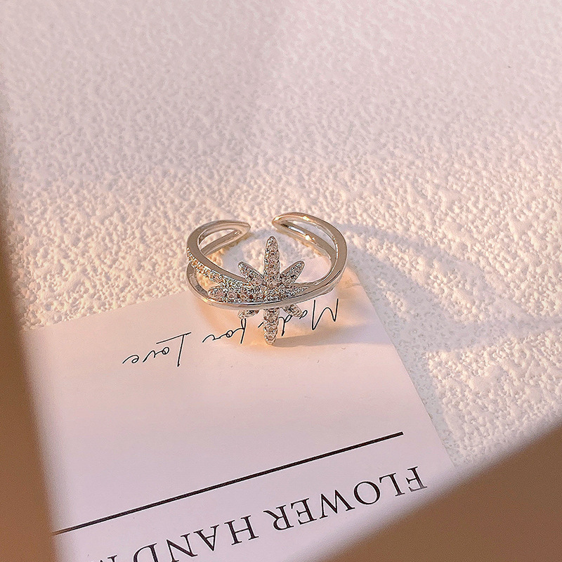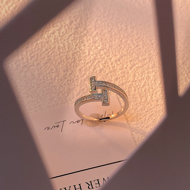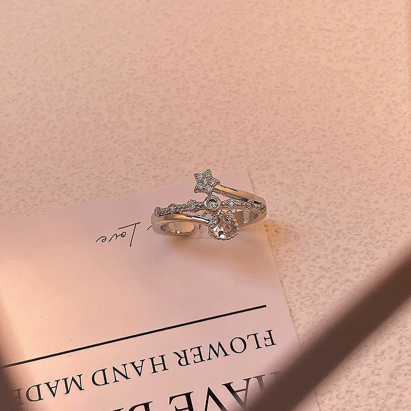 精致满钻锆石素圈皇冠开口戒指女气质百搭时尚食指戒冷淡风指环潮