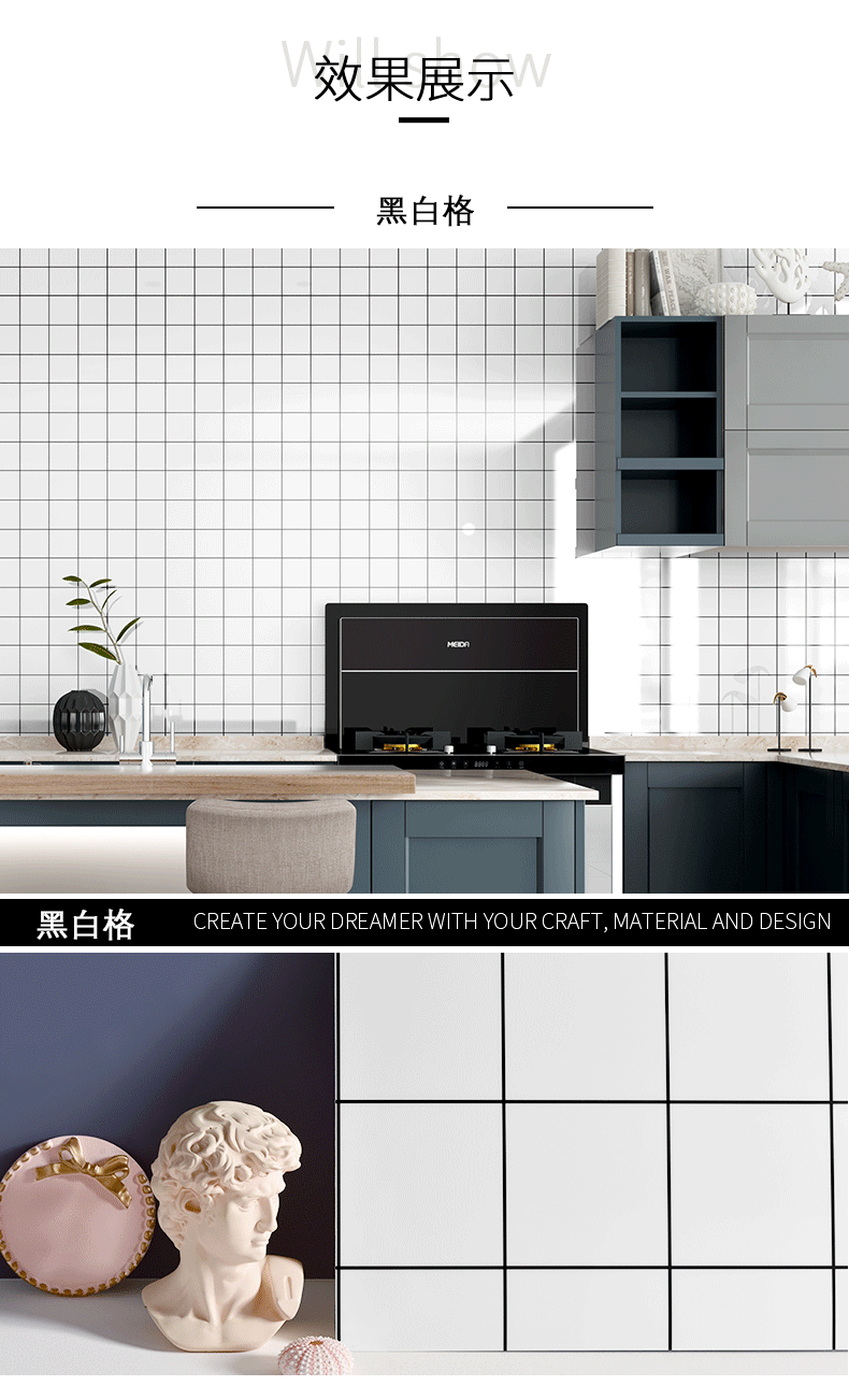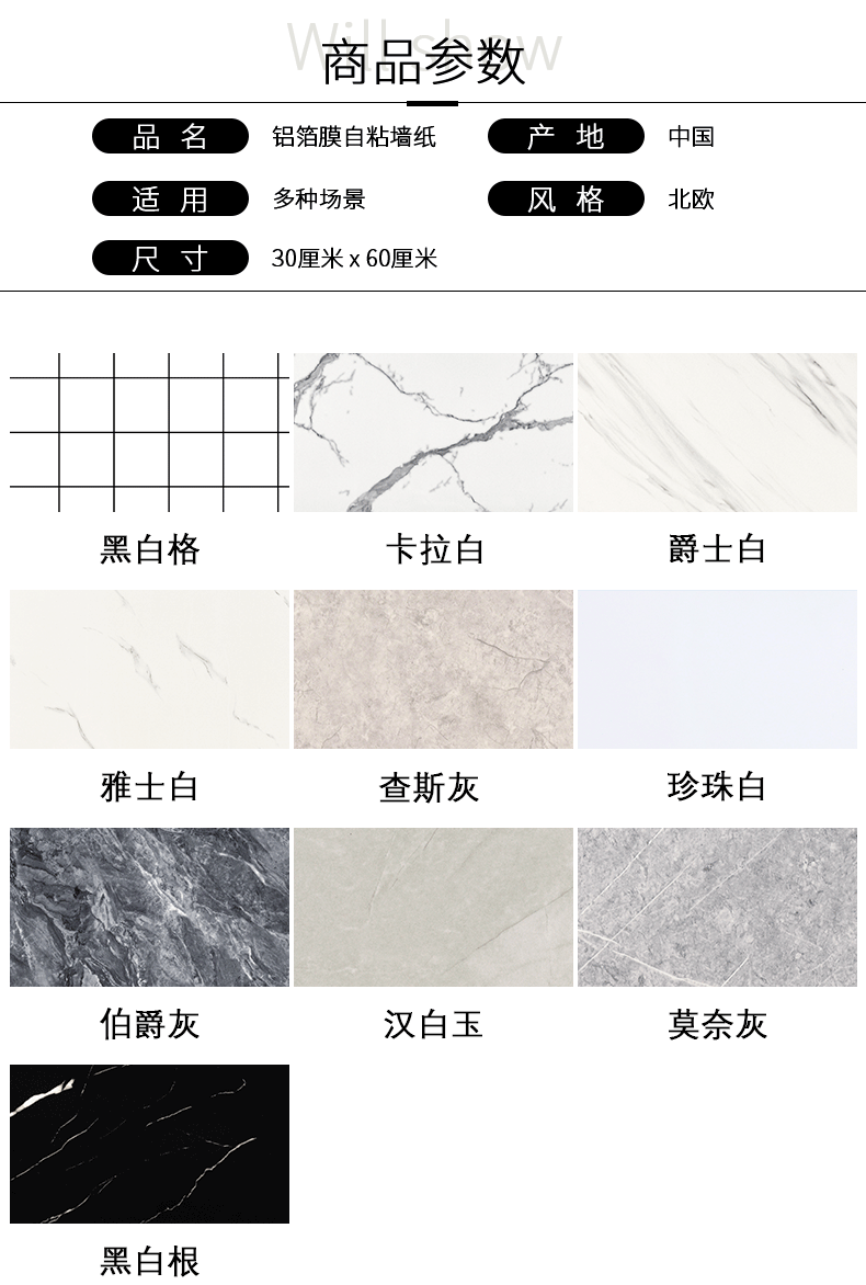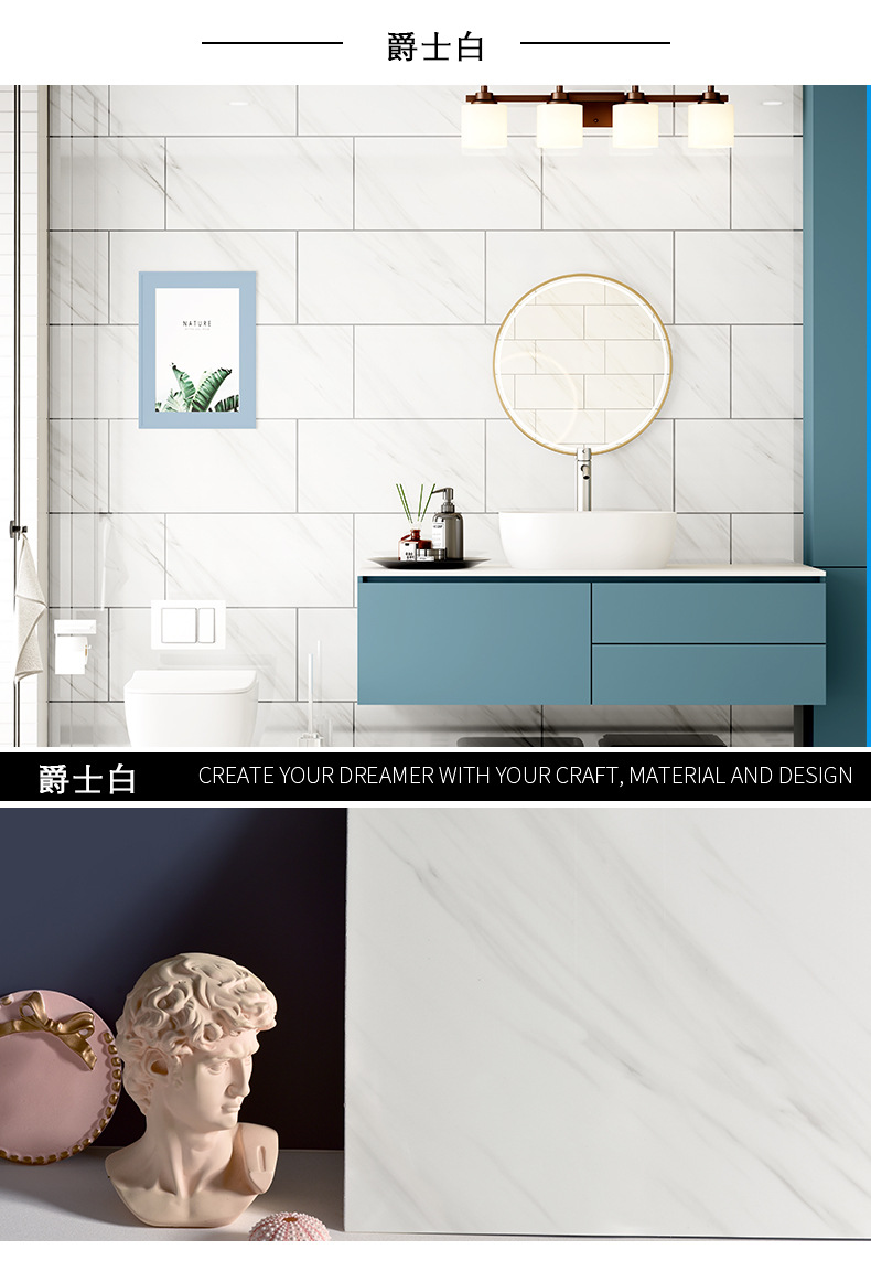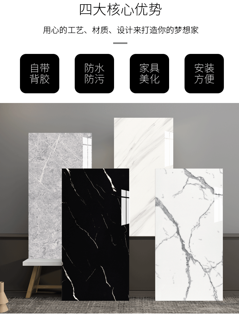 仿瓷砖大理石贴纸墙面翻新装饰背景墙防水防潮遮丑PVC板墙贴自粘