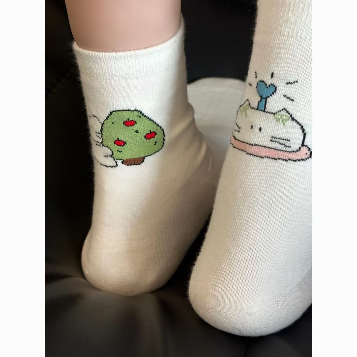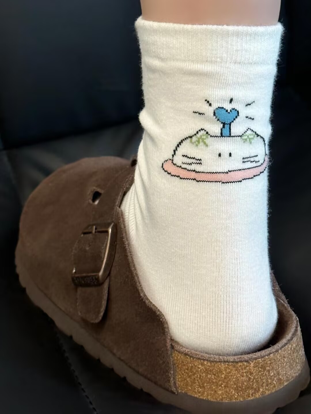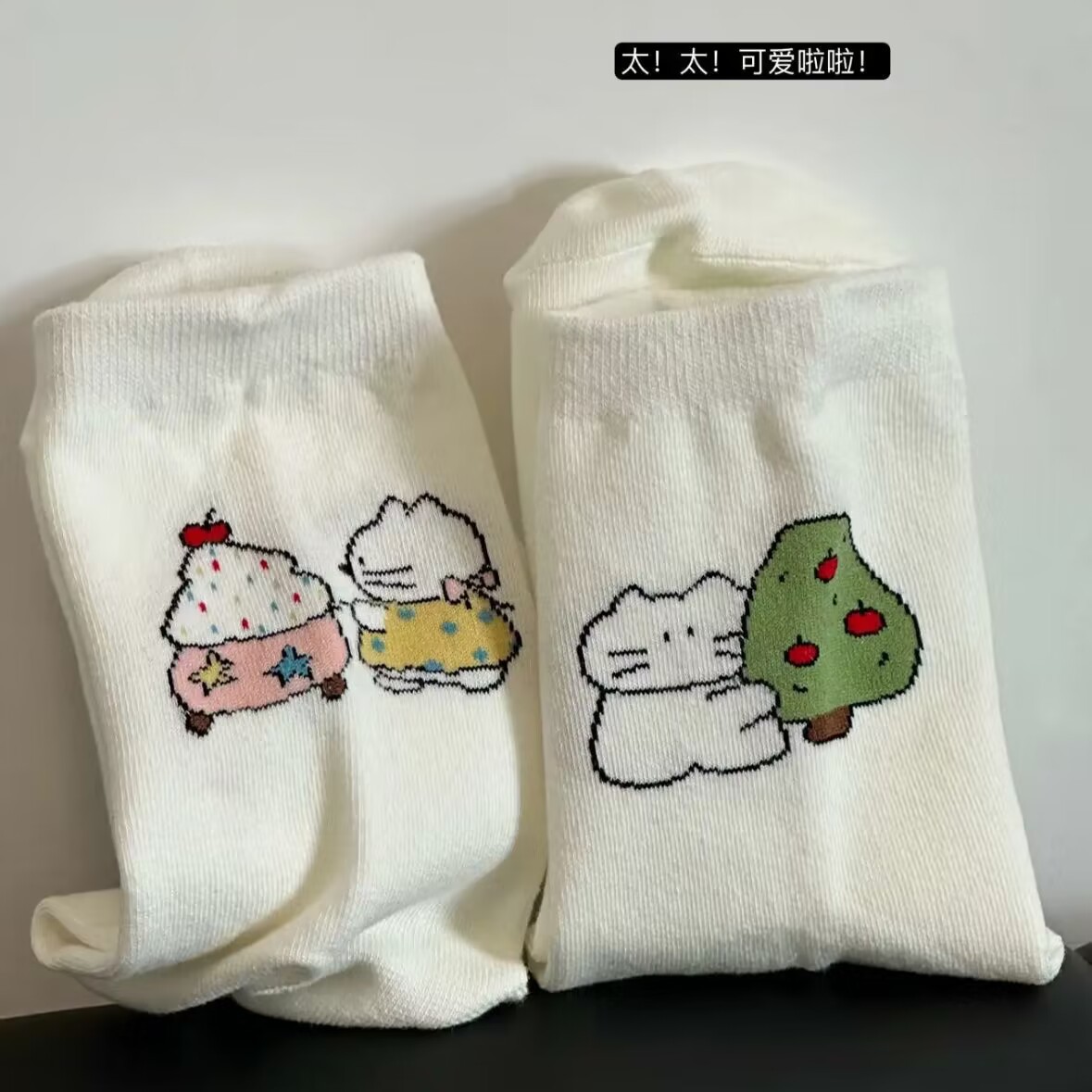 ins韩版春秋后跟线条卡通可爱小猫咪早秋款堆堆袜子女中筒袜学生