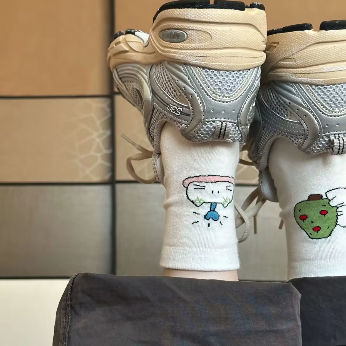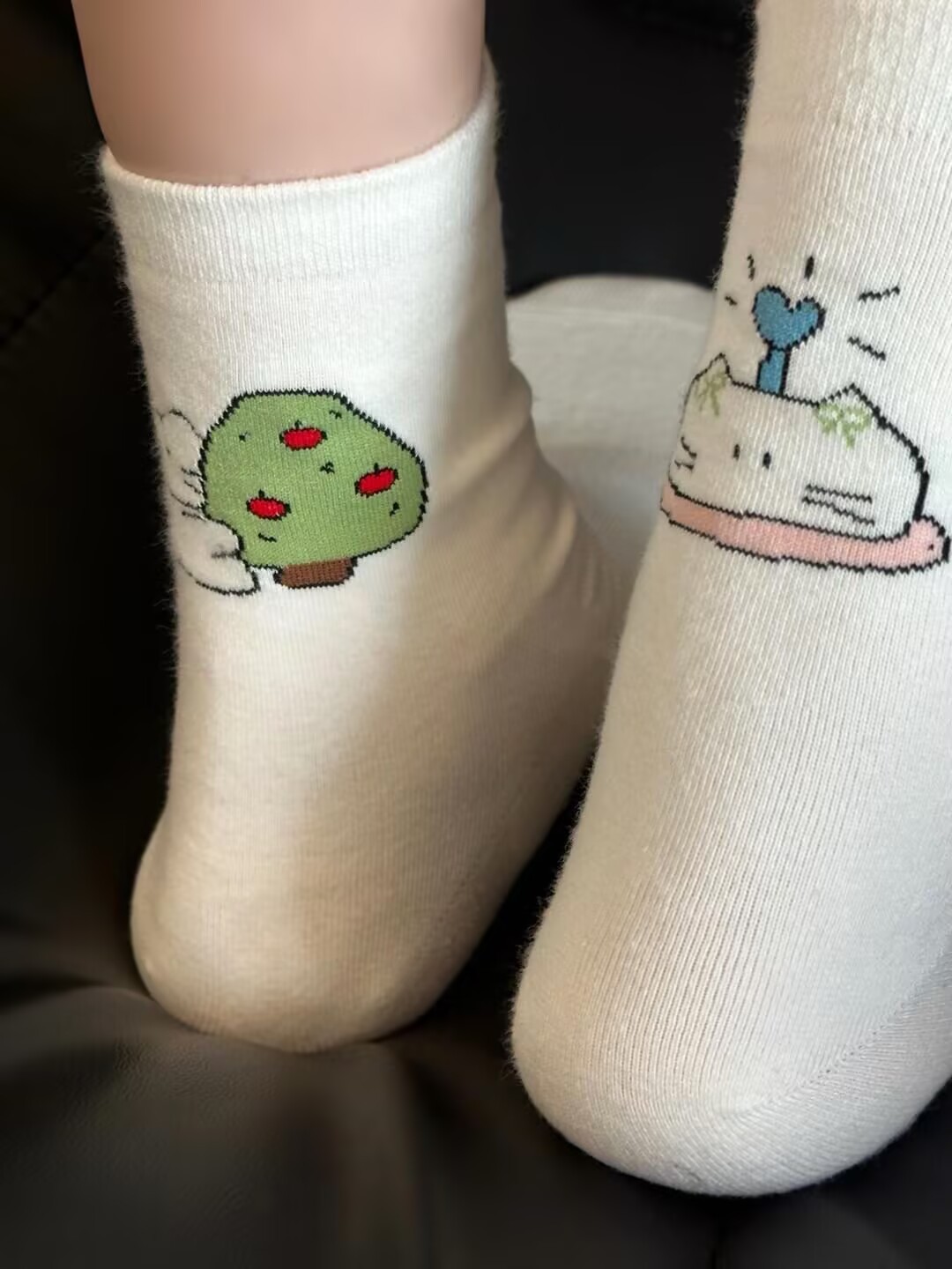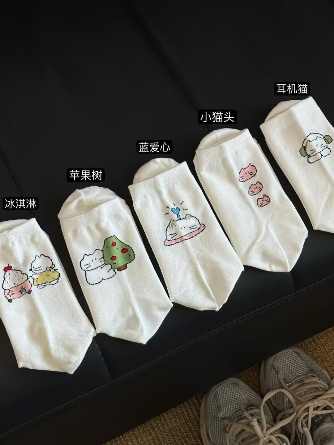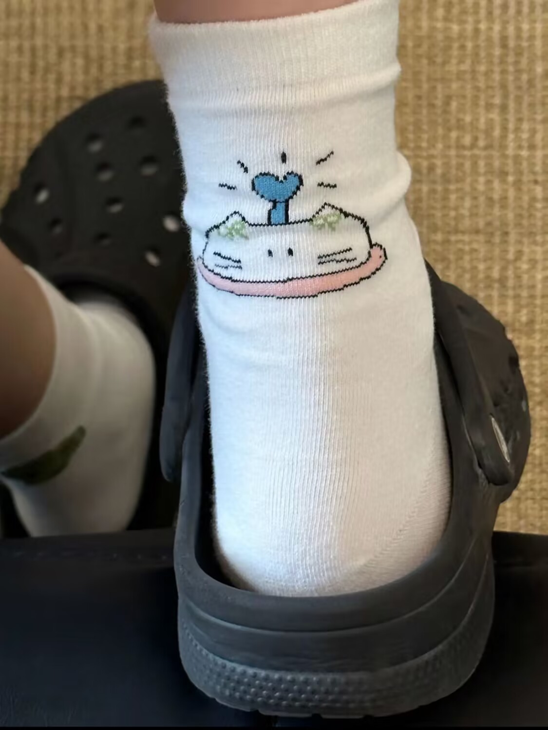 ins韩版春秋后跟线条卡通可爱小猫咪早秋款堆堆袜子女中筒袜学生