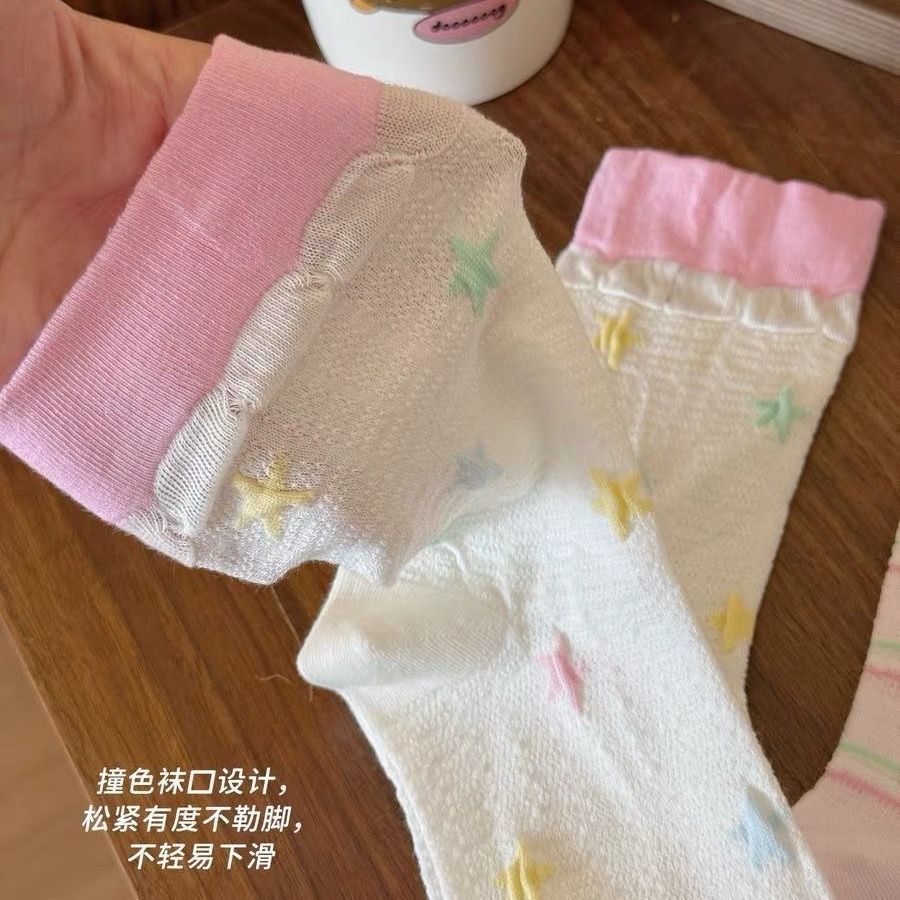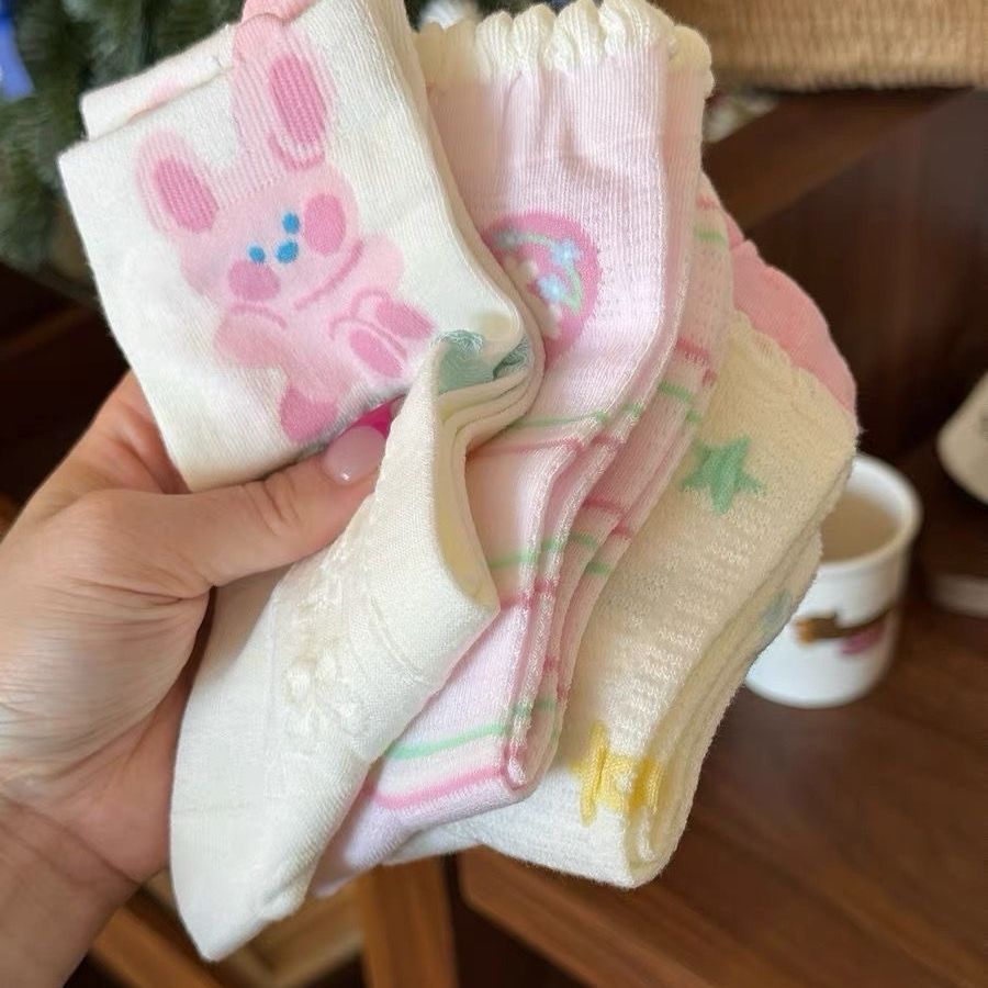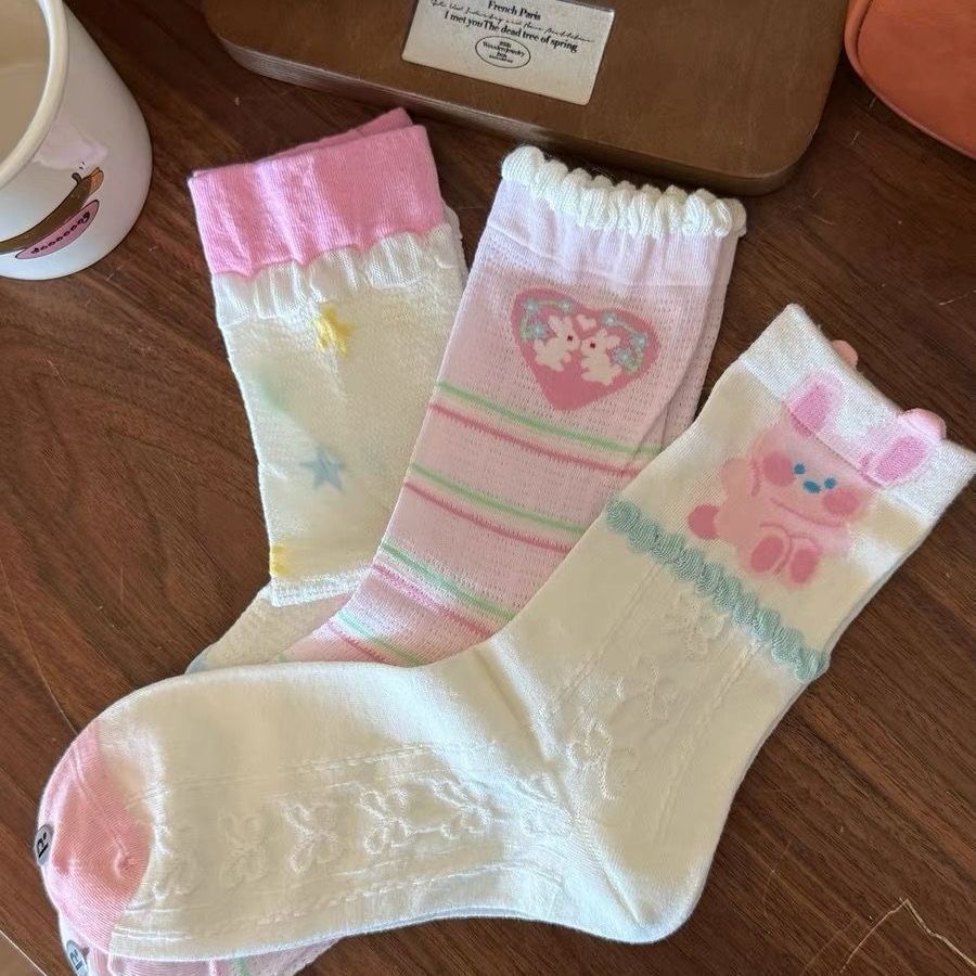 春夏季薄款兔子透气吸汗花边袜子女中筒袜粉色卡通ins可爱少女风