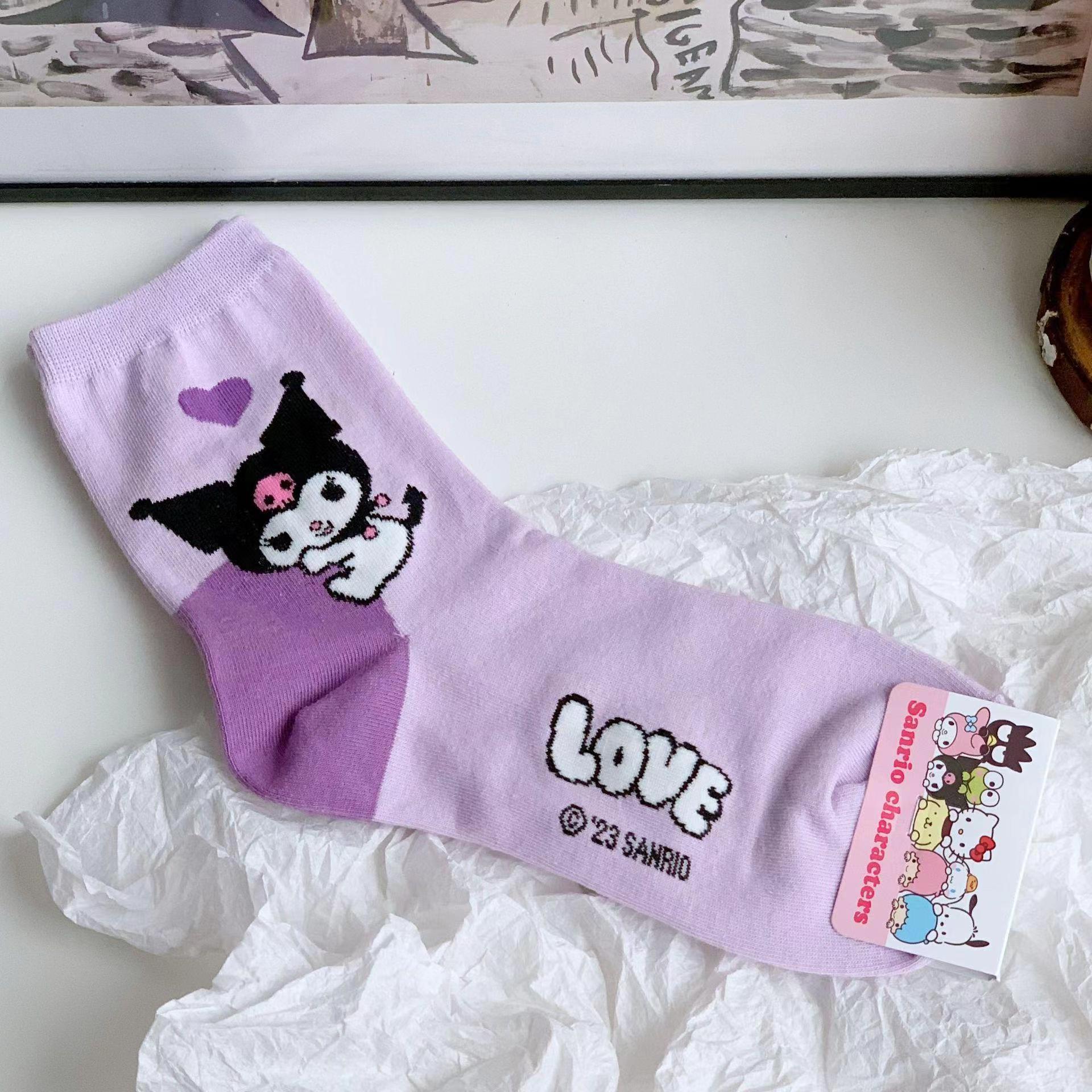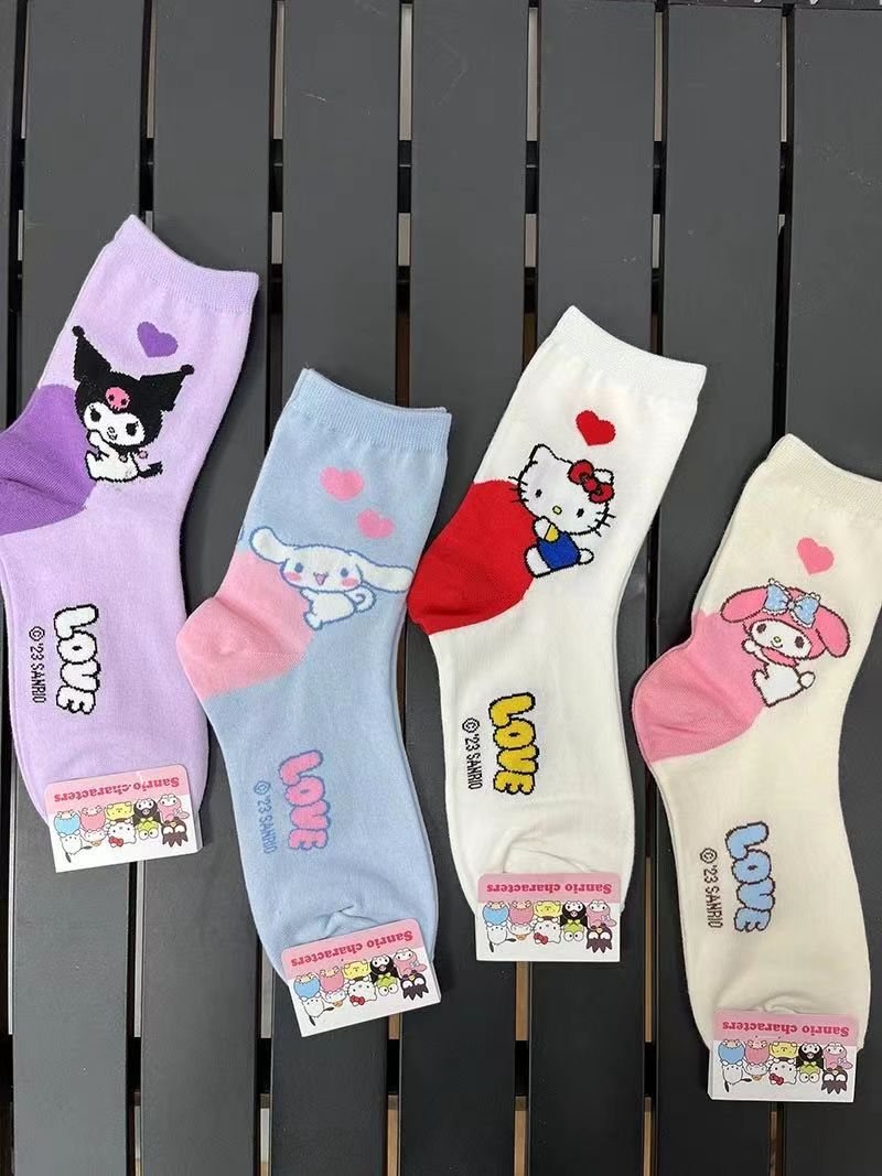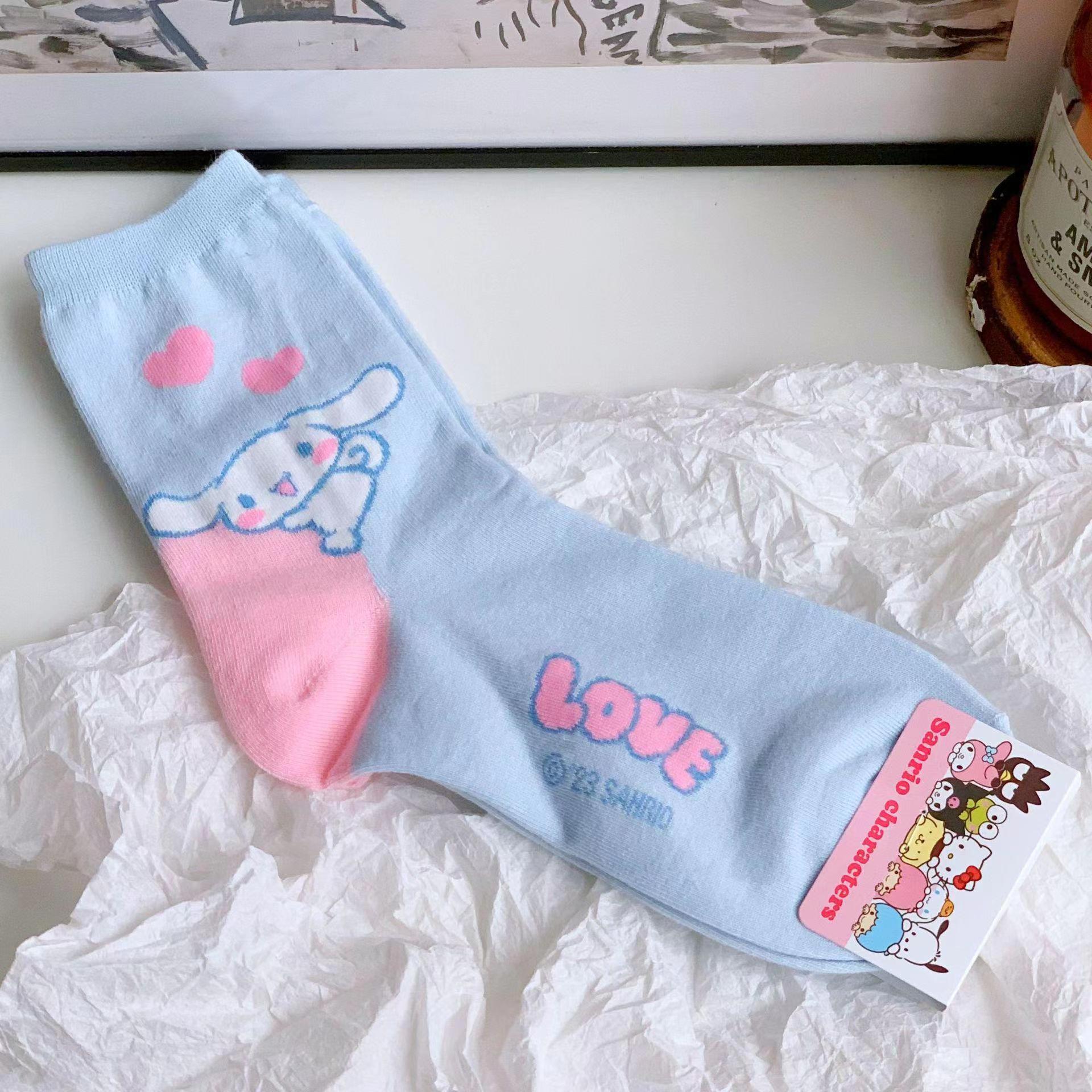 儿童袜子三丽鸥女童卡通后跟图案袜子学生库洛米美乐蒂中筒防滑袜