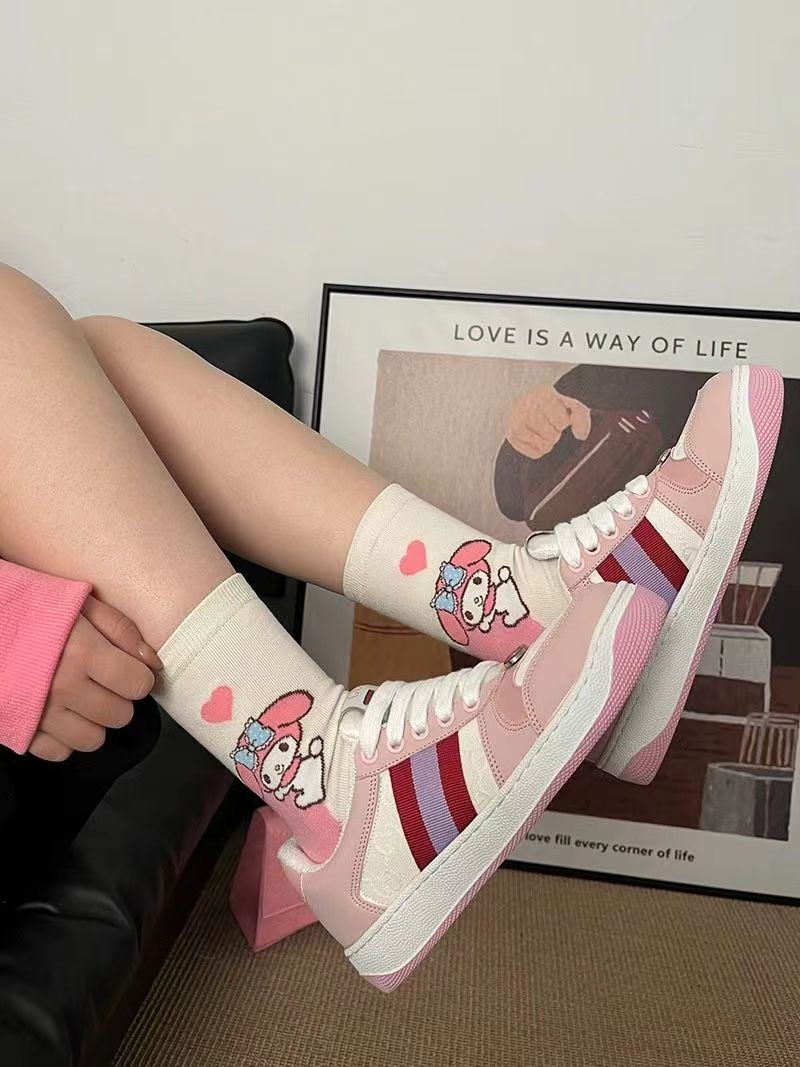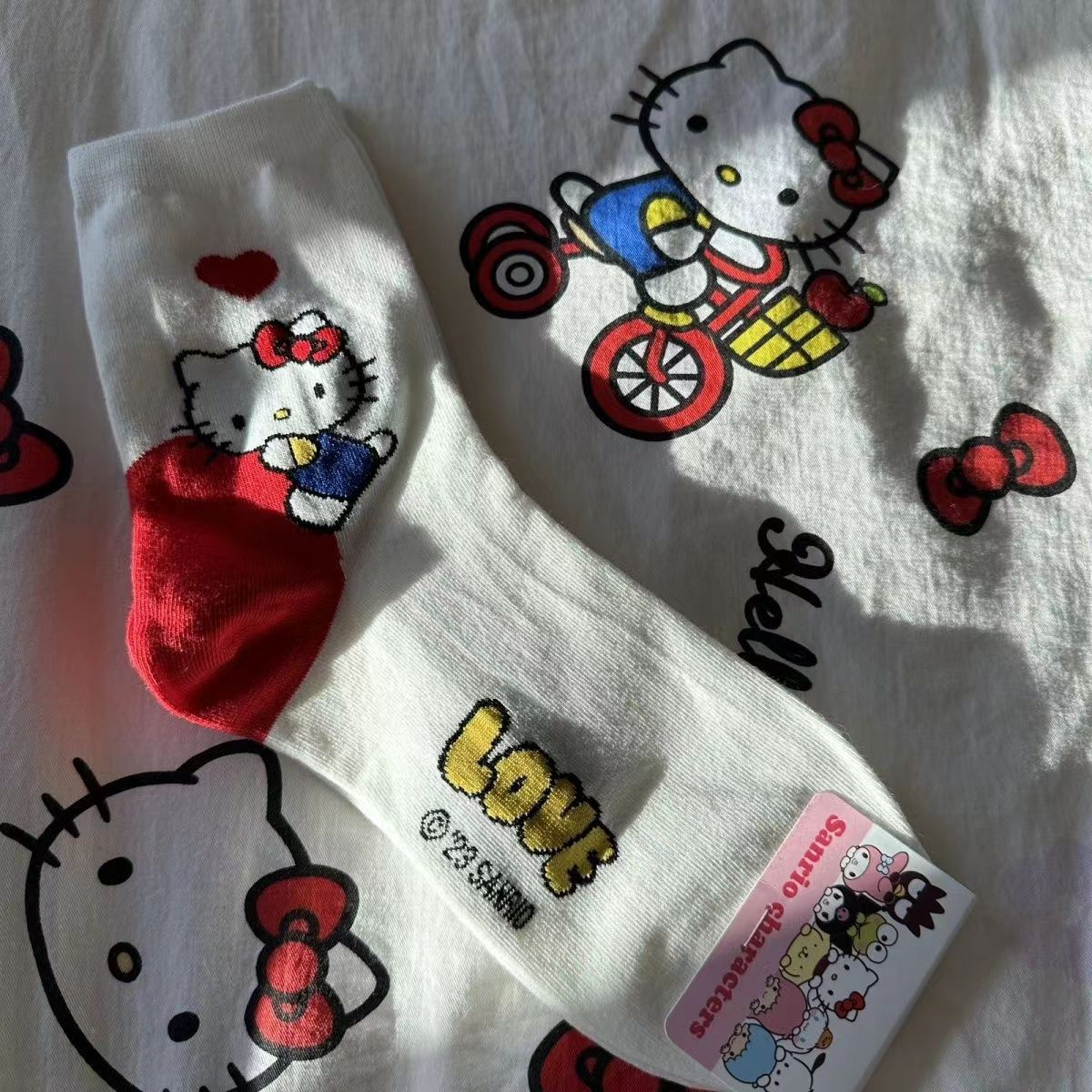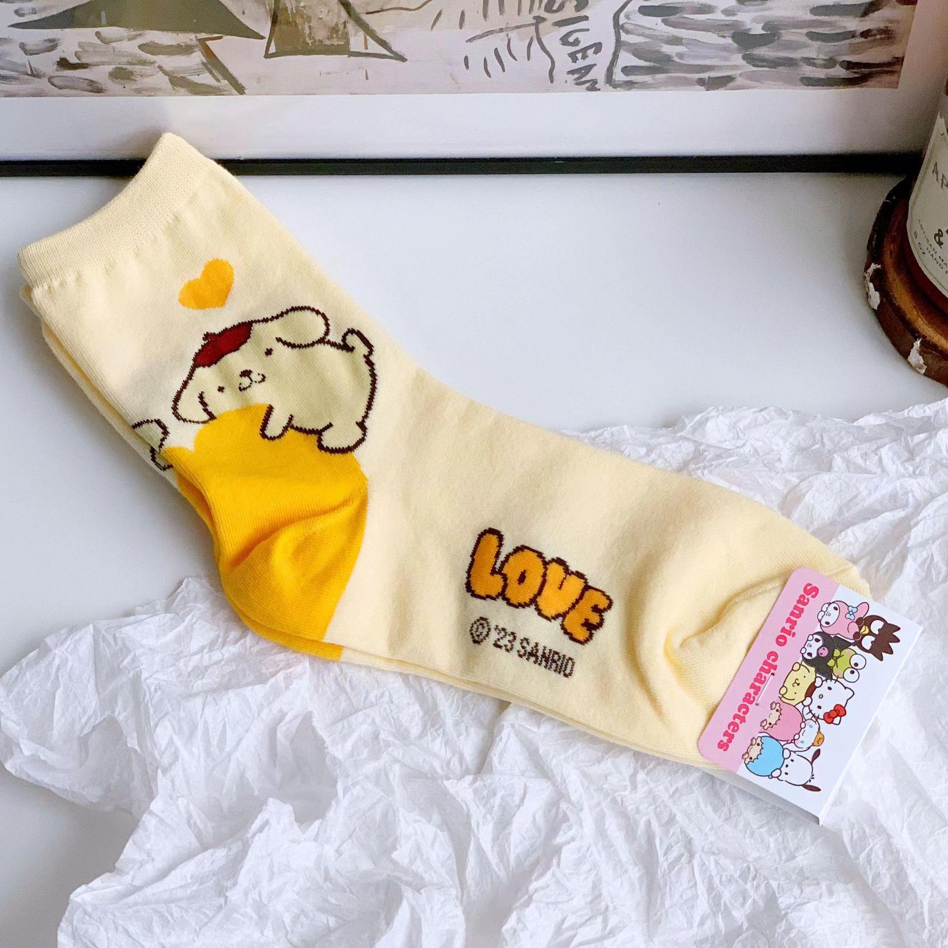 儿童袜子三丽鸥女童卡通后跟图案袜子学生库洛米美乐蒂中筒防滑袜