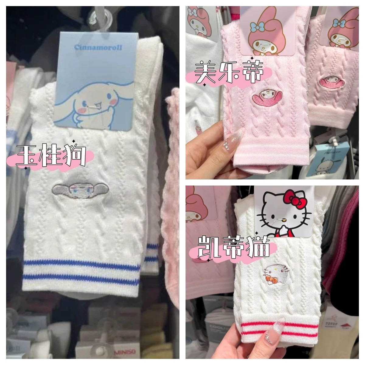 日系甜美卡通中筒堆堆袜学院风肌理袜子女夏薄款可爱美乐蒂玉桂狗