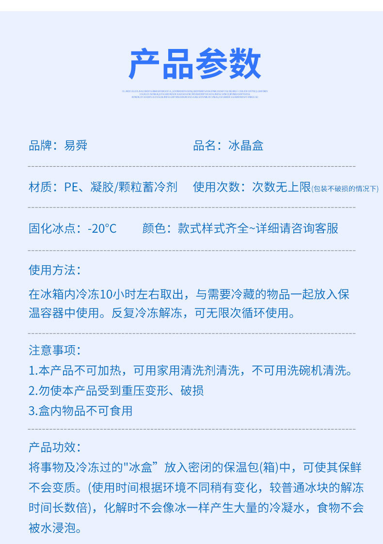 冰晶盒制冷保鲜冷藏空调扇冷风机通用型冰盒冰砖冰板冰包反复使用