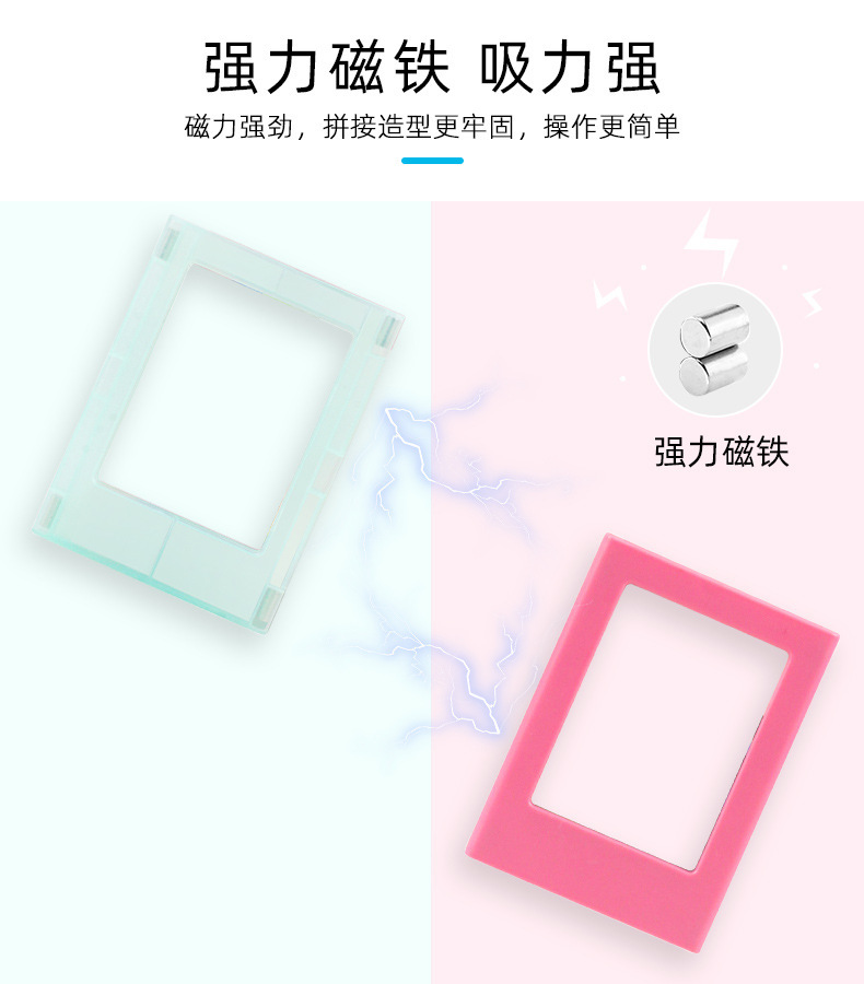 磁吸拍立得相框透明3寸小卡展示架DIY磁力相框摆台桌面摆件彩色