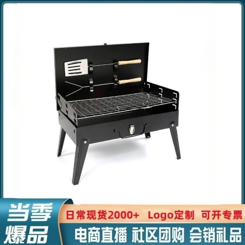 户外烧烤炉厂家供应家用便携烤炉 可折叠手提箱式烧烤架