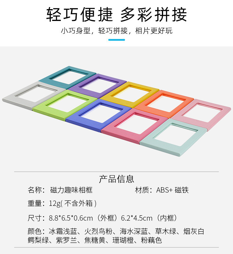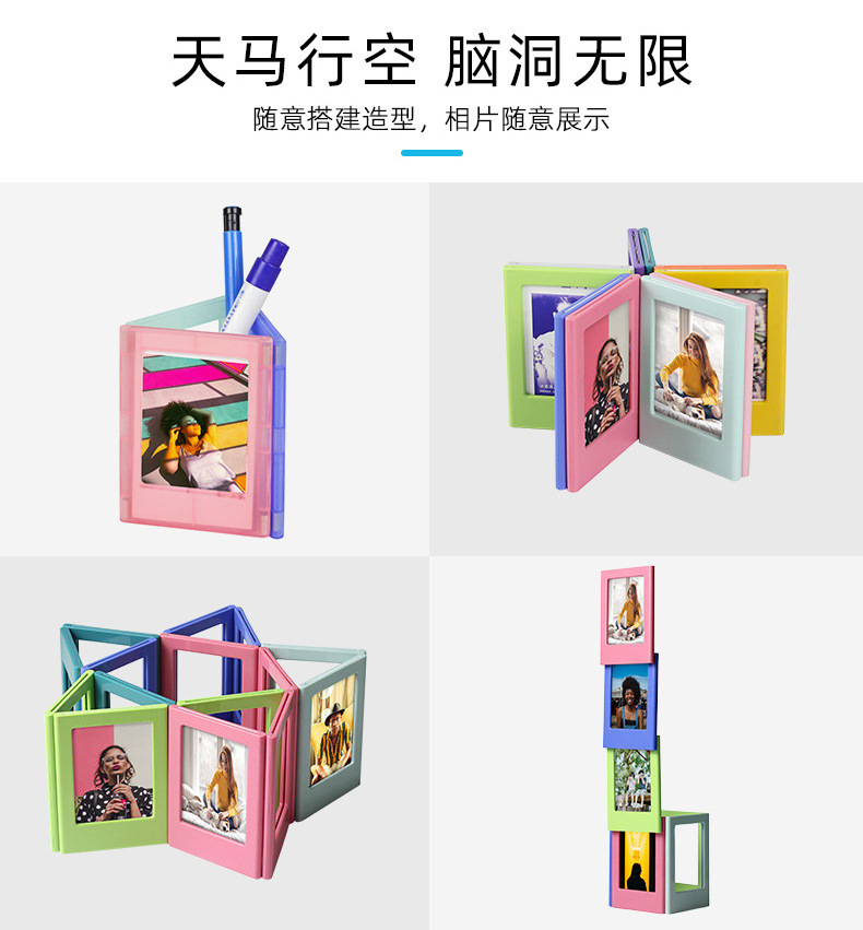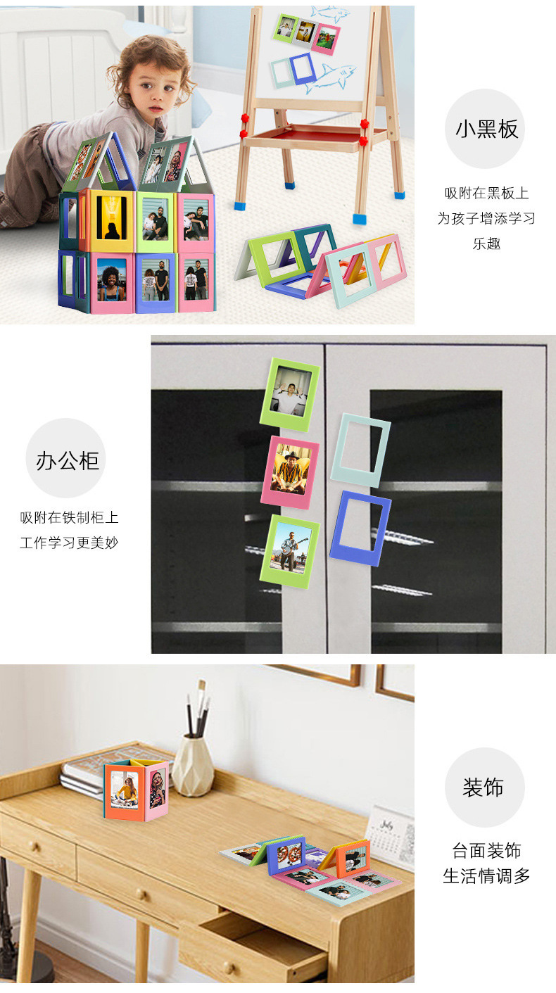 跨境热卖拍立得3寸磁力片摆台创意diy磁吸趣味小相框透明相框中空