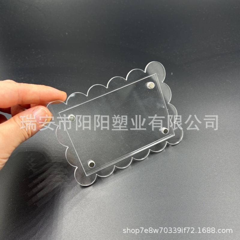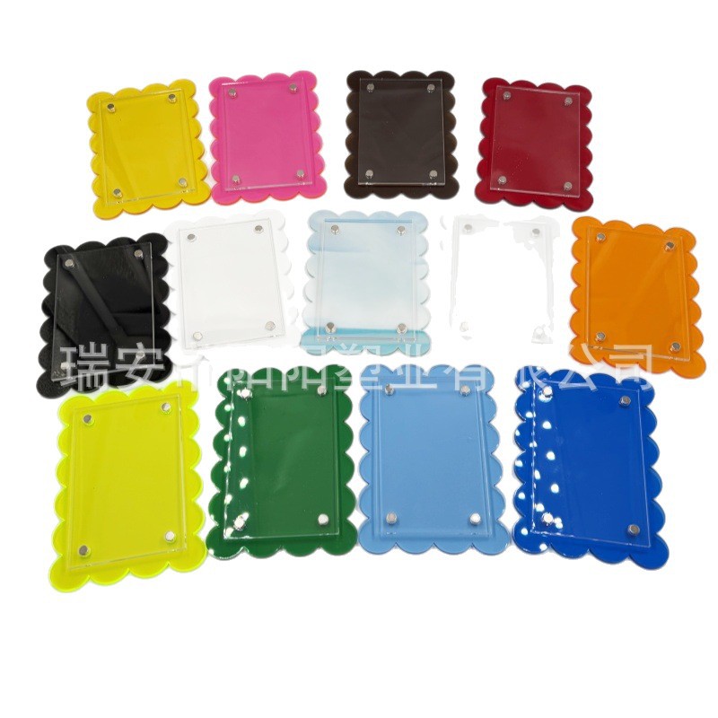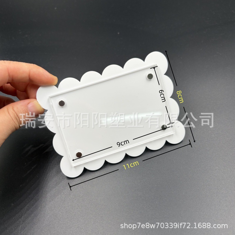 拍立得亚克力彩色相框磁吸冰箱贴扇形花边带磁性3寸相框展示牌