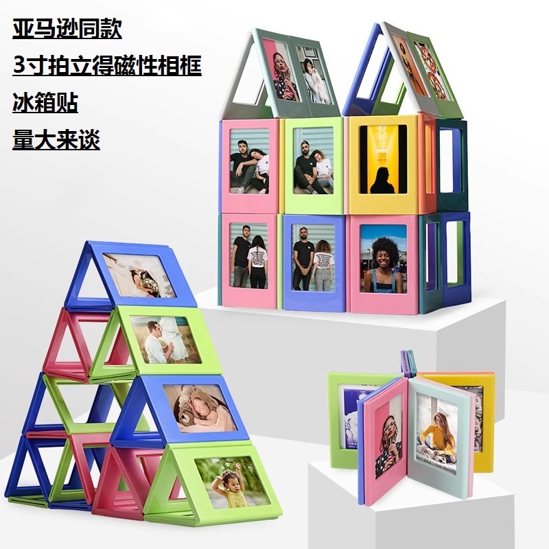 亚马逊希音TEMU拍立得相框亚克力磁吸相框展示架免打孔粘贴冰箱贴