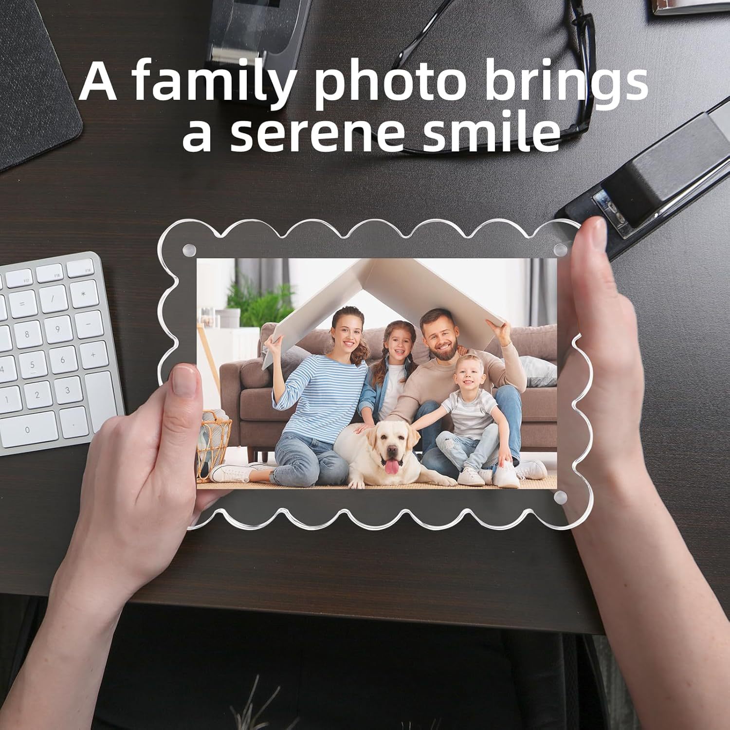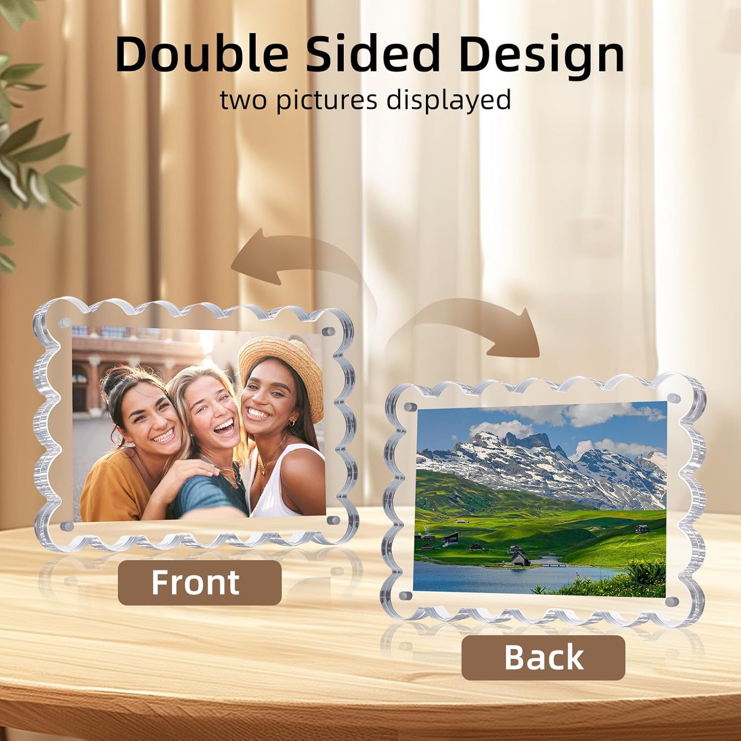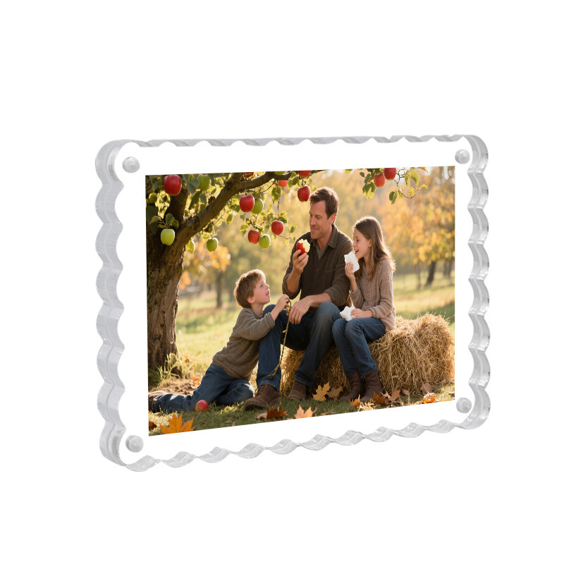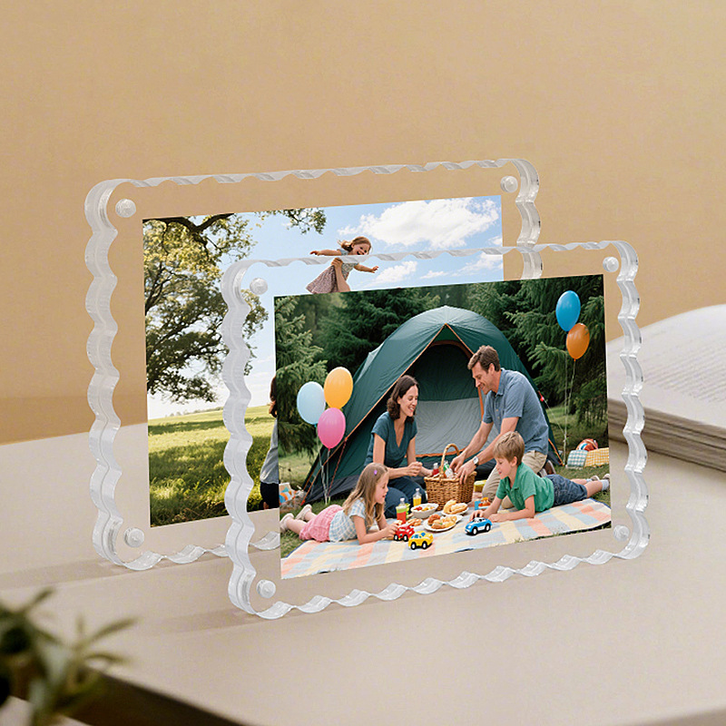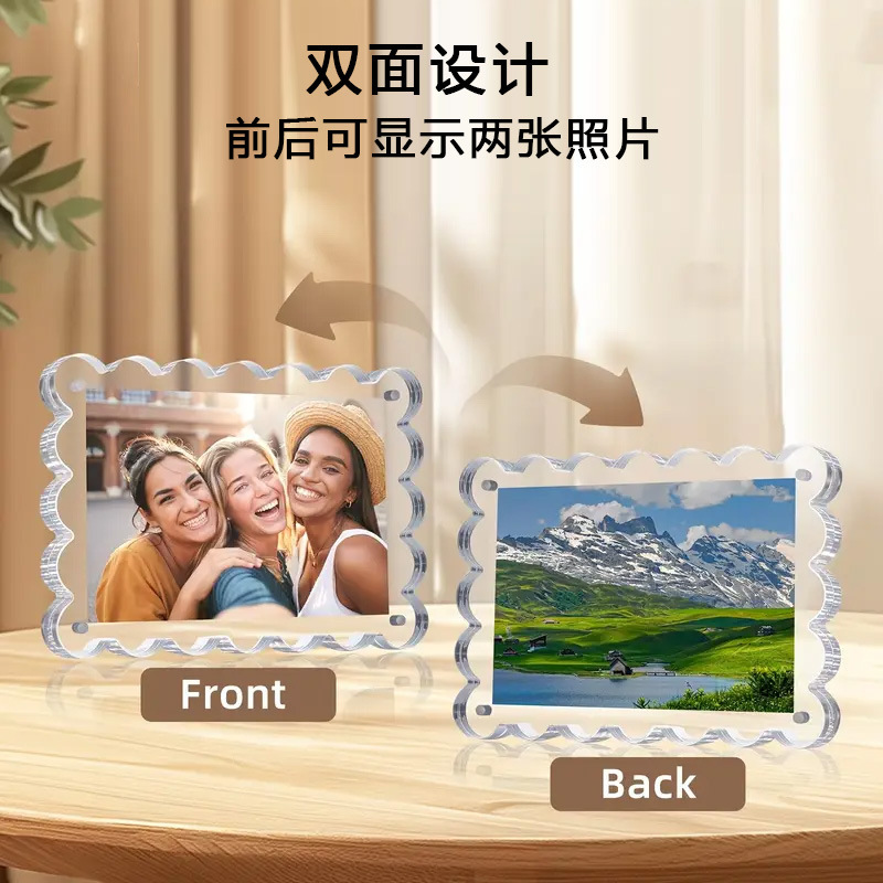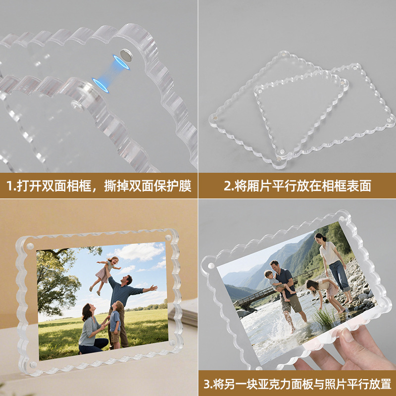 亚克力磁吸相框空框透明波浪形拍立得照片明信片展示框双面水晶砖