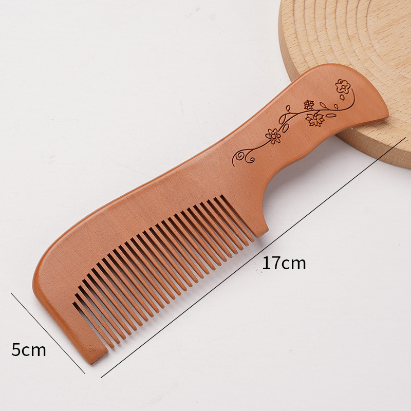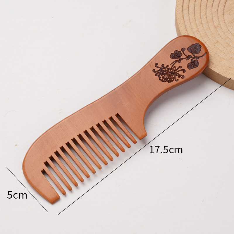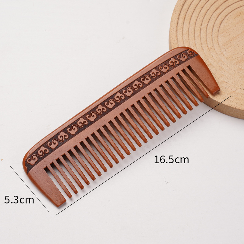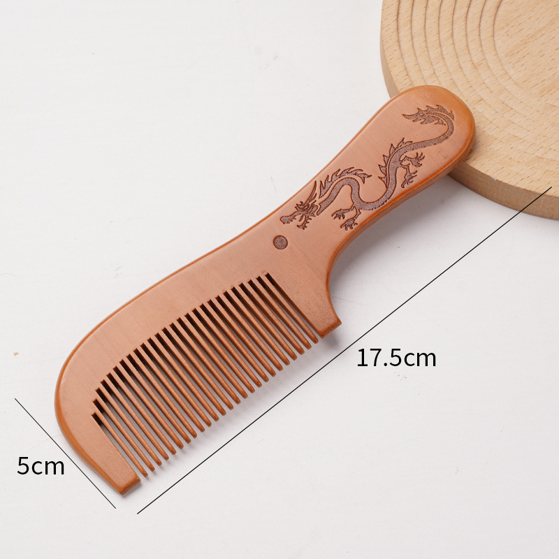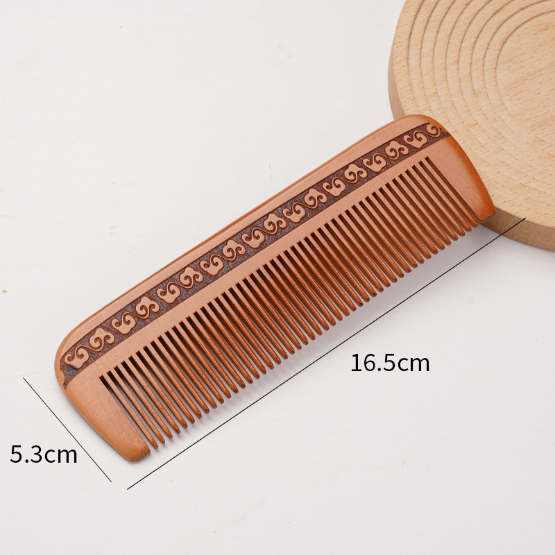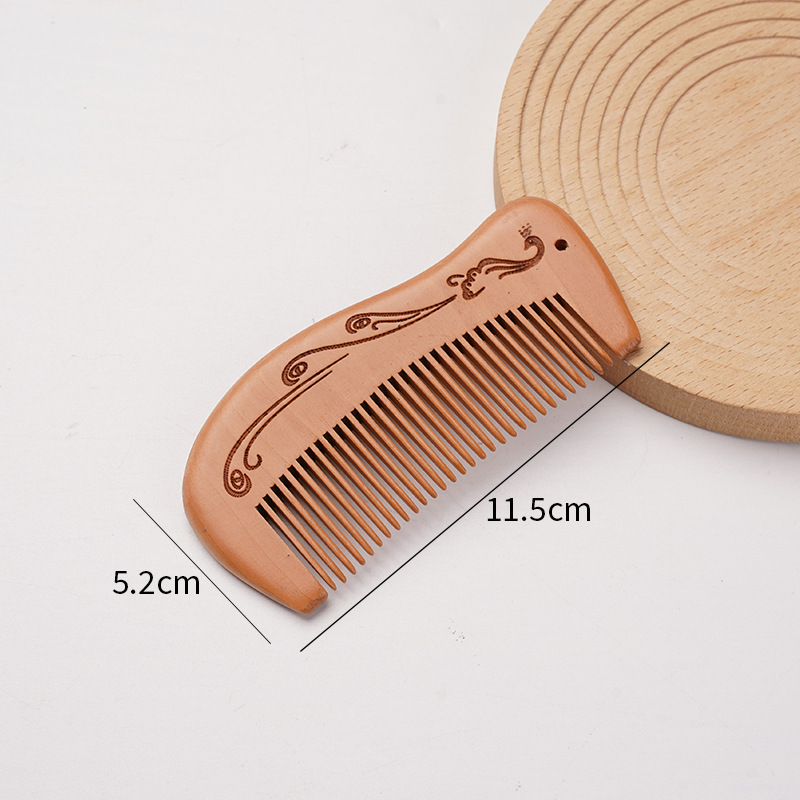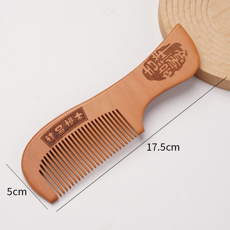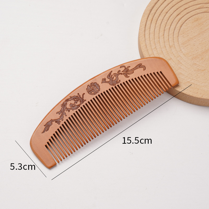 天然桃木梳家用雕刻木梳子女士用便携化直发美发梳免费logo礼品梳