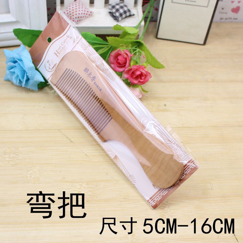 长柄木质梳子独立包装弯把木梳子美发店铺礼品月牙款梳头木梳批发