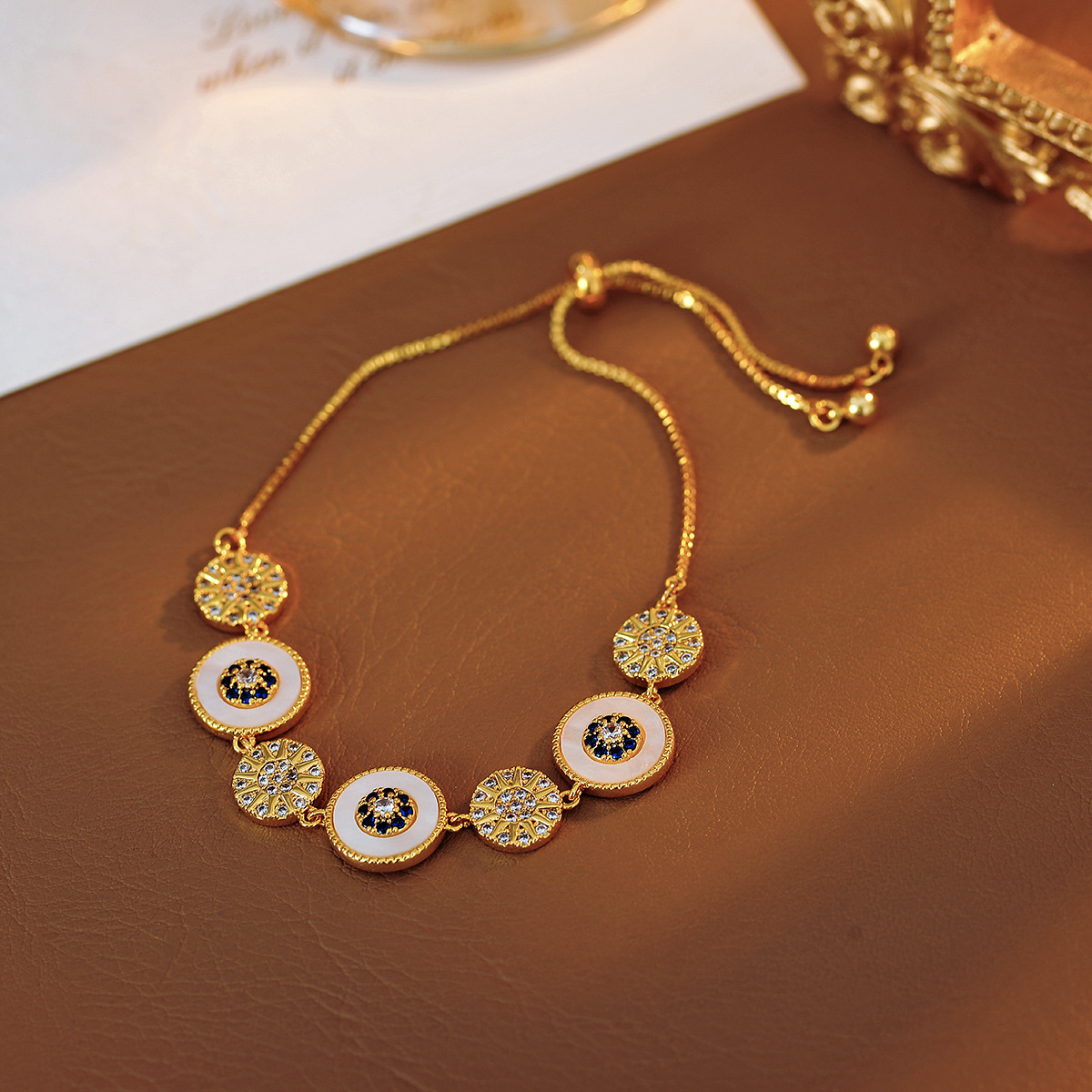 【炫彩六芒星】法式气质轻奢八芒星抽拉式时尚手链天然白贝批发
