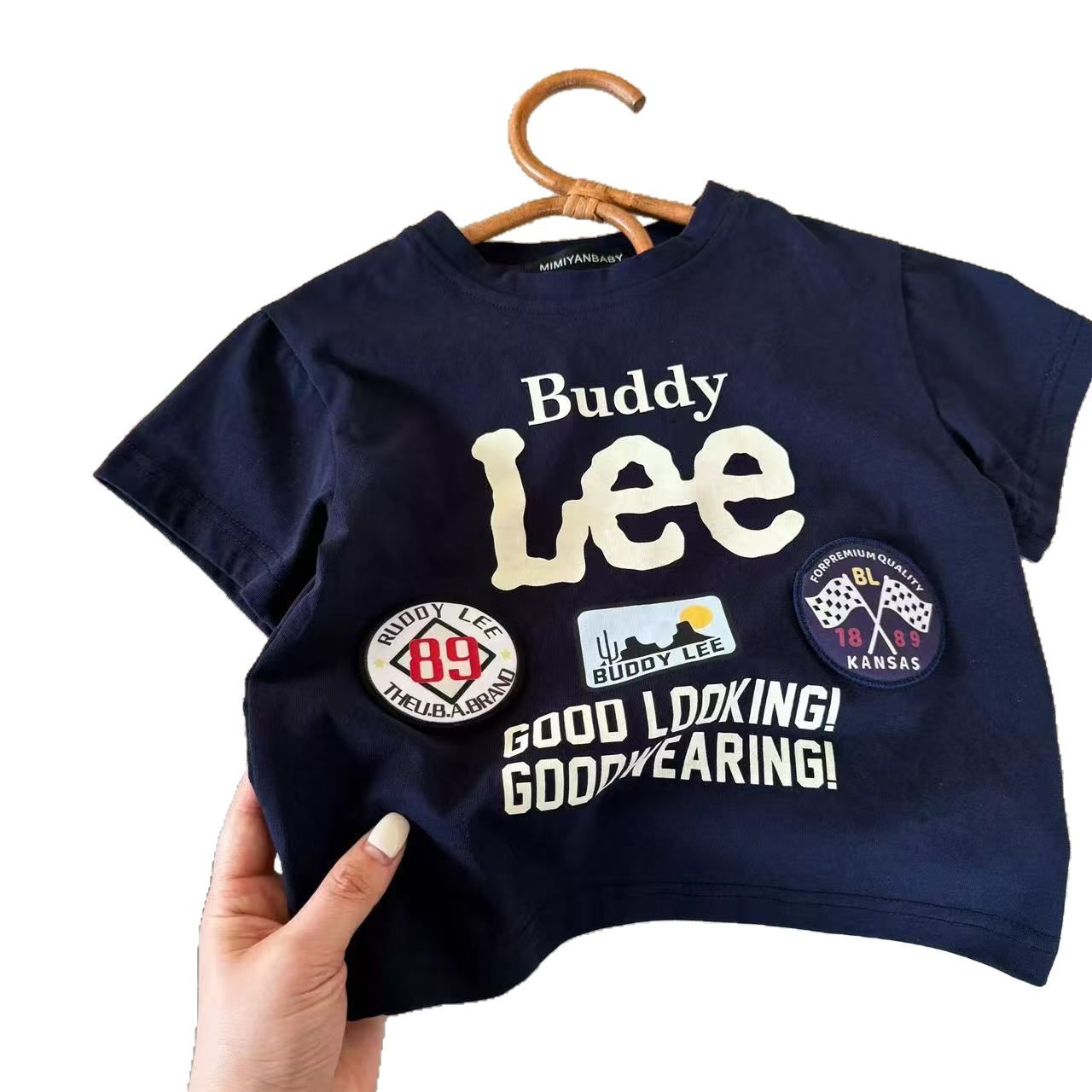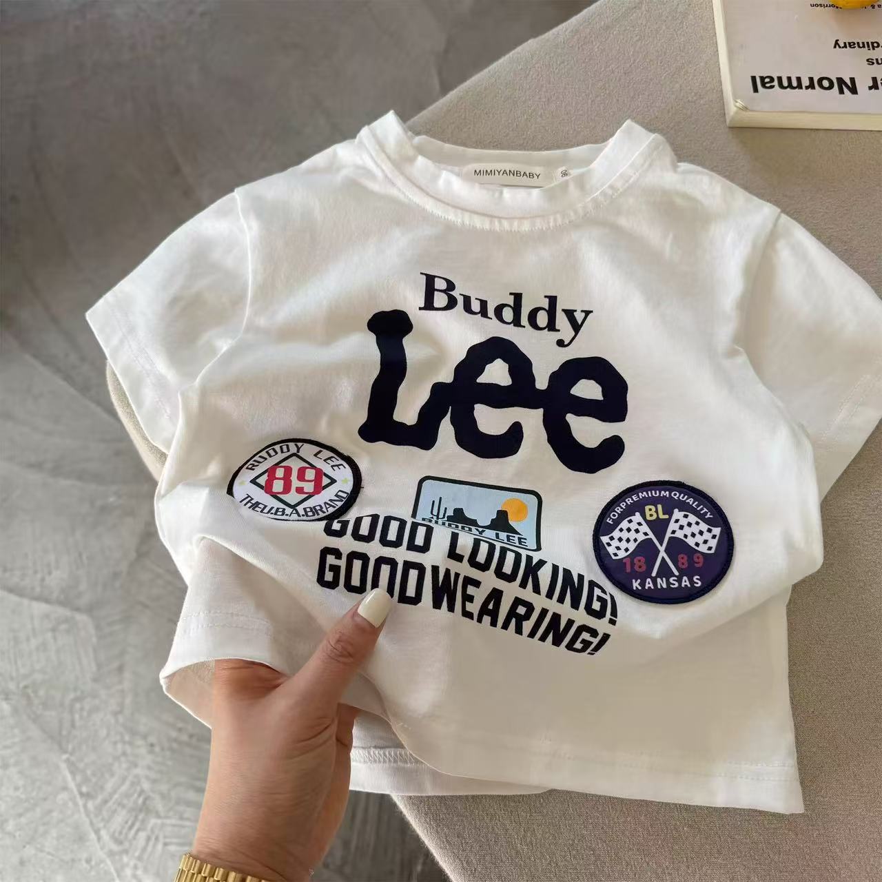 辰妈儿童短袖2025夏男女童日系潮牌字母刺绣纯棉T宝宝小童半袖T恤