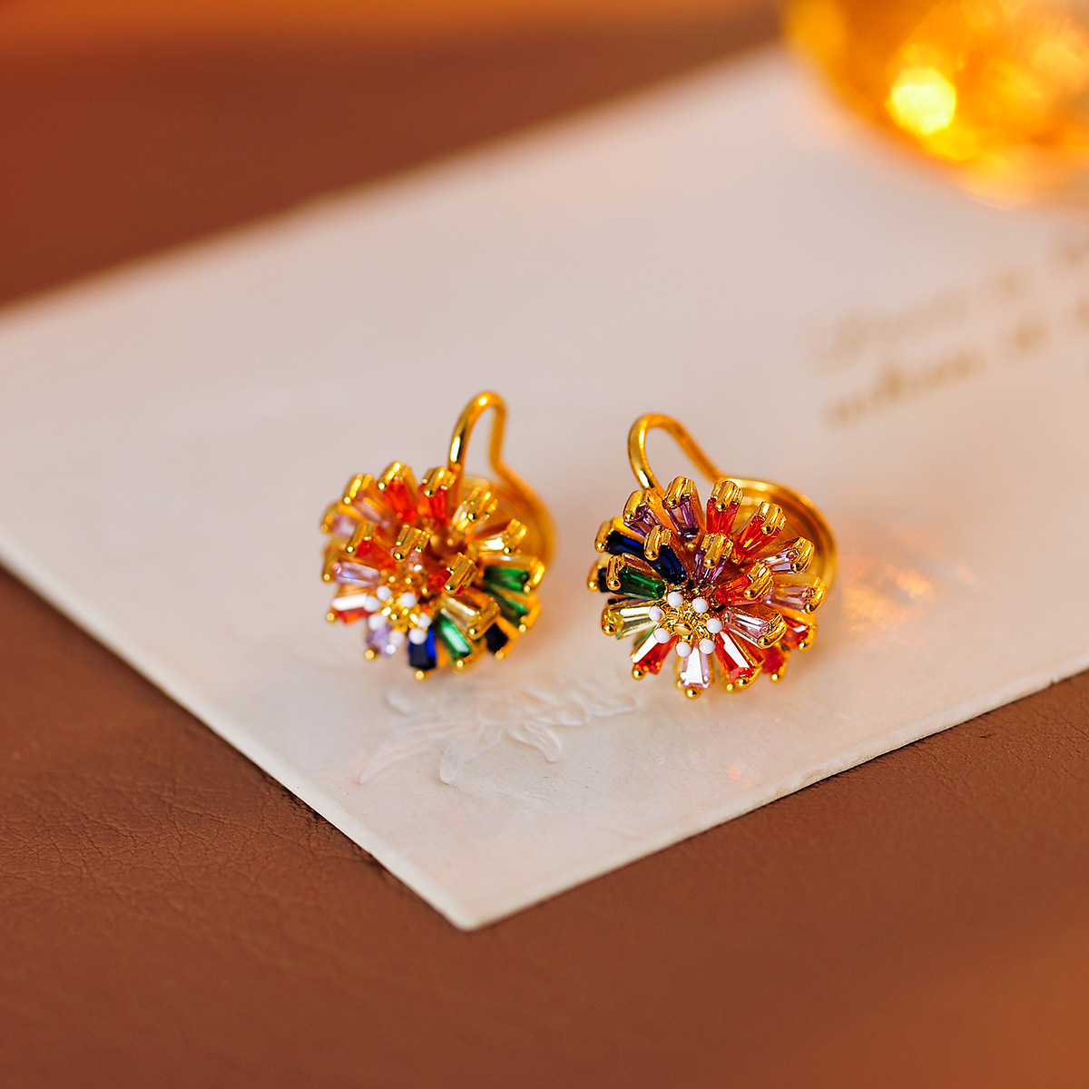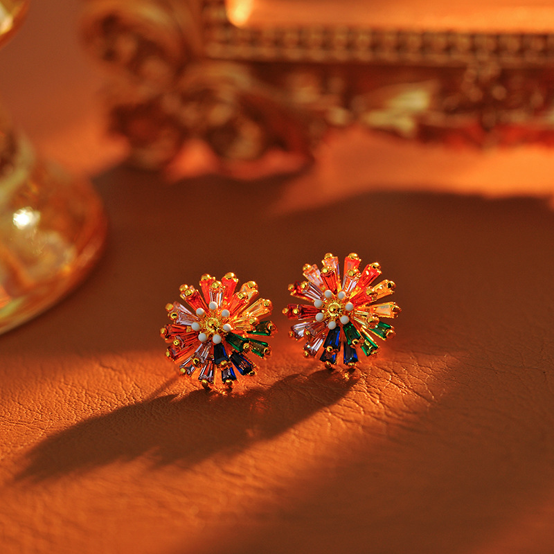 彩色锆石雏菊耳钉彩虹花朵耳环高级感轻奢小众多巴胺耳饰爆款批发