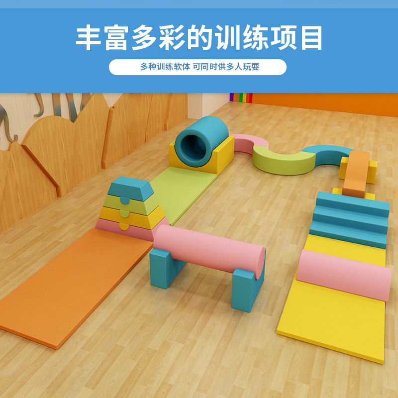 早教中心软体组合儿童体适能17件套攀爬幼儿园感统训练爬滑梯器材