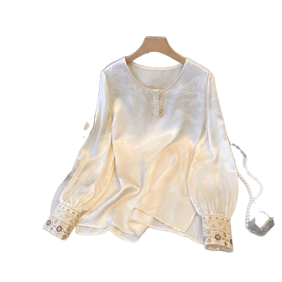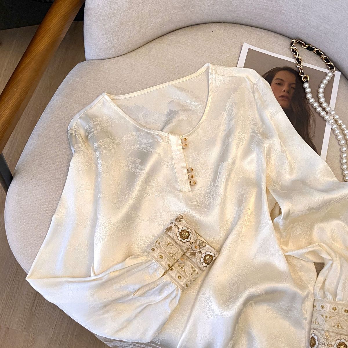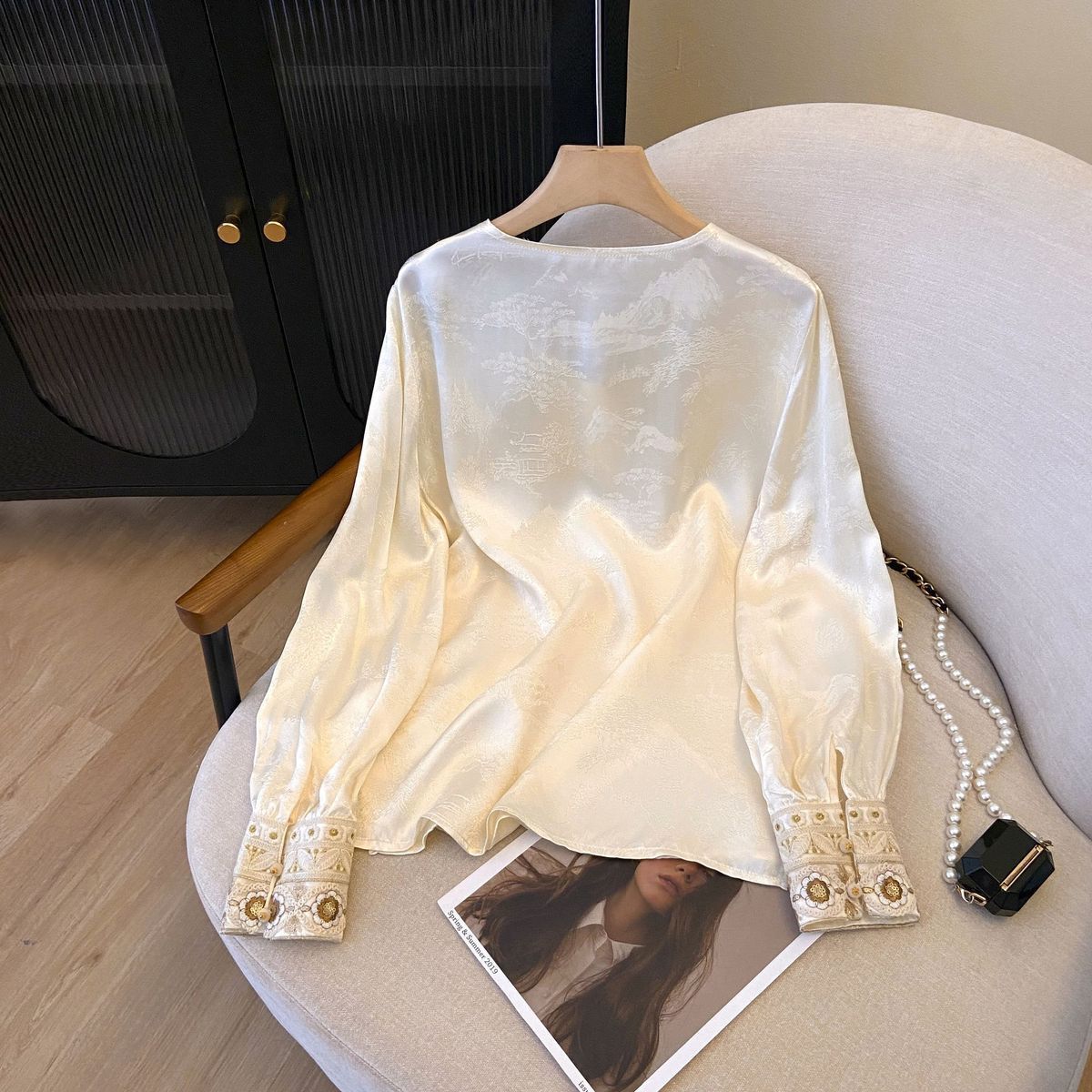 国风打底衫配马甲的内搭衬衫长袖刺绣衬衣女春装设计感新中式上衣