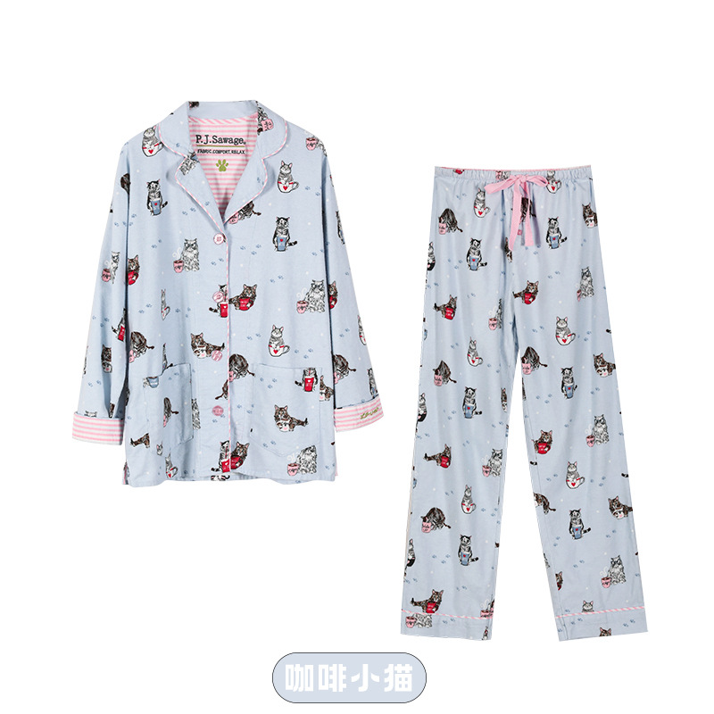 P.J.Sawage秋冬双面磨毛保暖睡衣套装女 轻柔棉质月子服家居服pjs