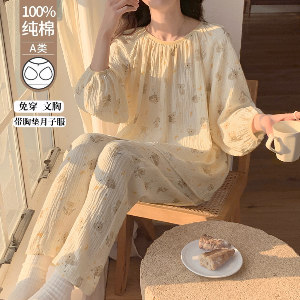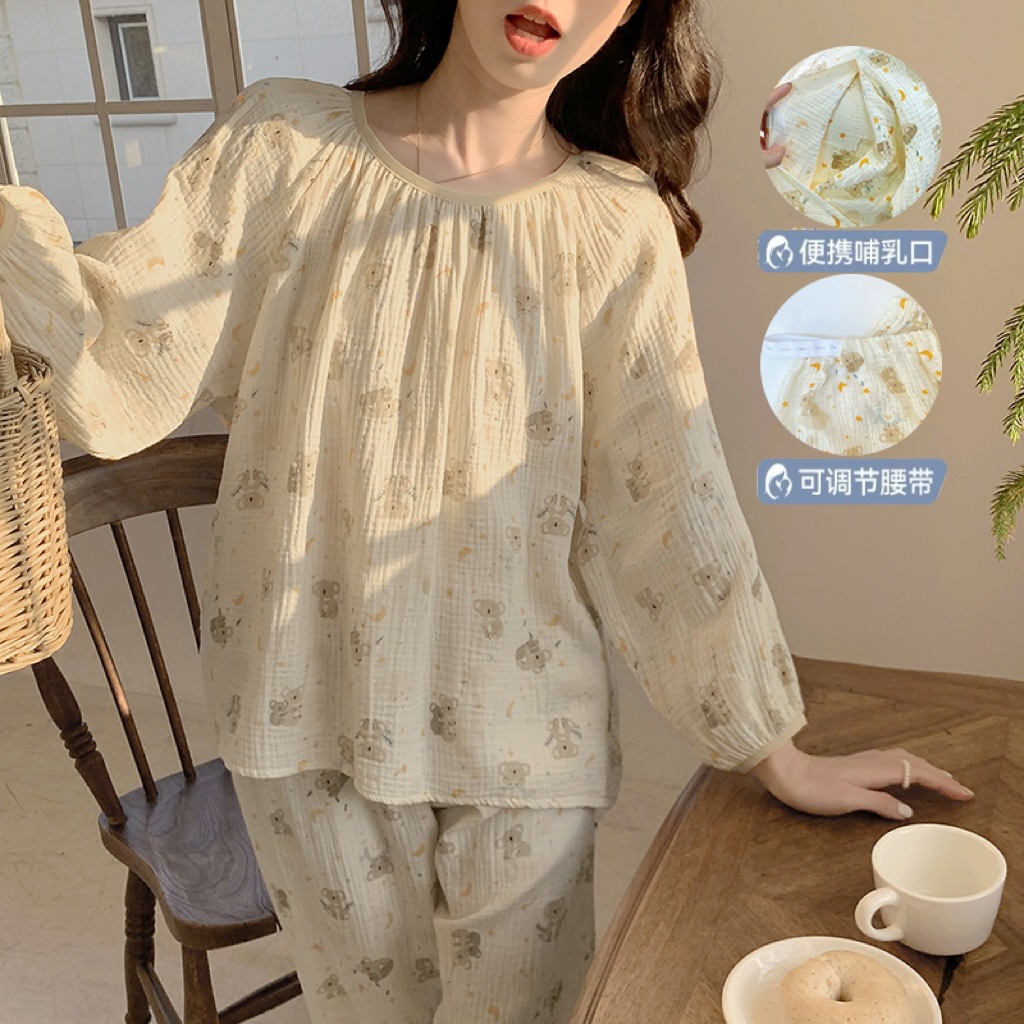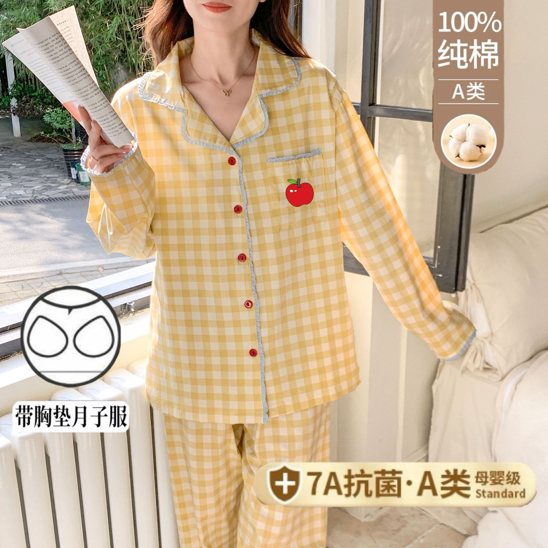 A类母婴级纯棉夏季薄款月子服孕妇睡衣产后喂奶哺乳春秋居家套装