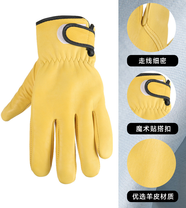 定制金黄色羊皮机械维修劳保手套厂家焊工手套氩弧焊防烫单层手套