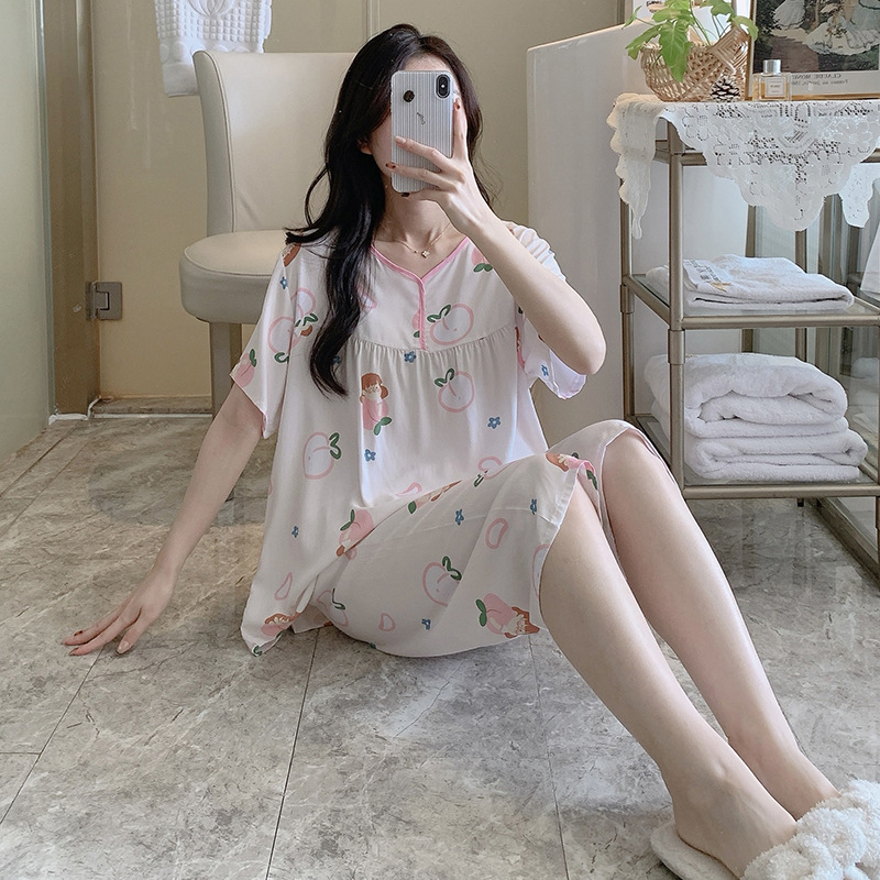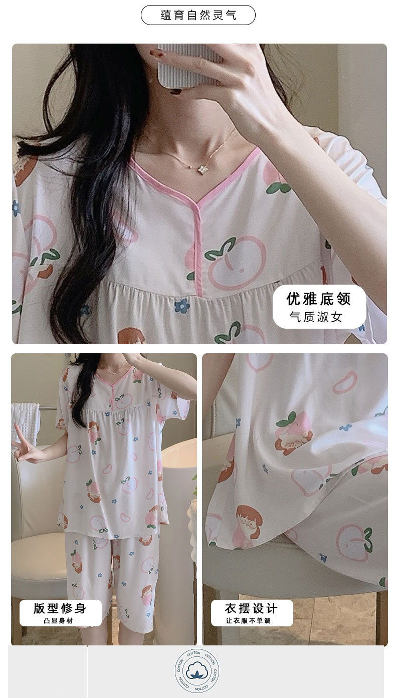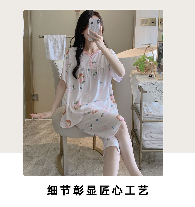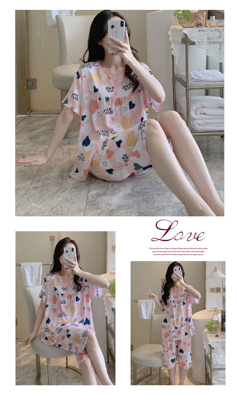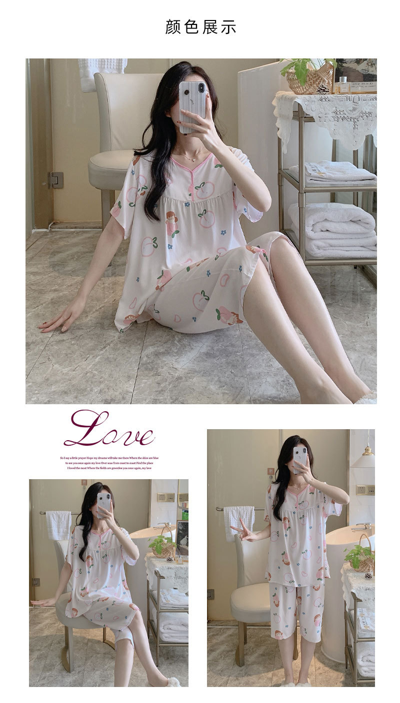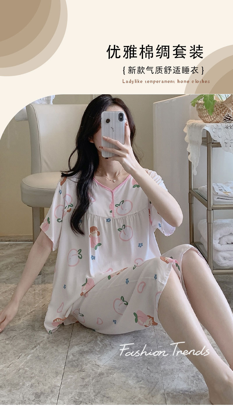 新款棉绸睡衣女夏季薄款人棉家居服韩版可爱甜美少女外穿大码套装