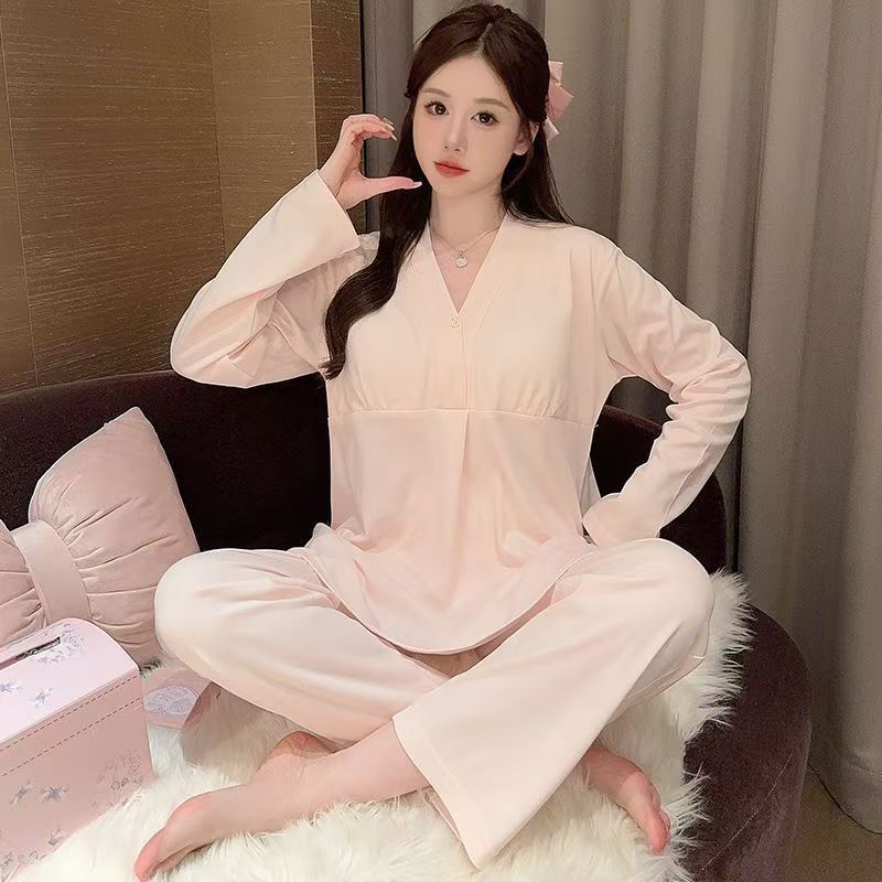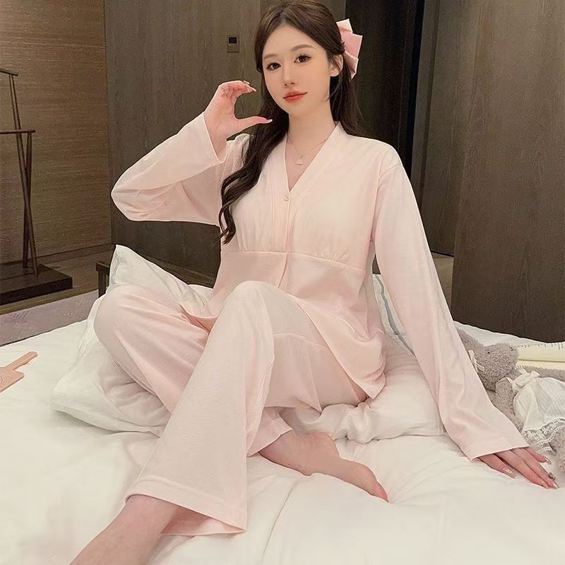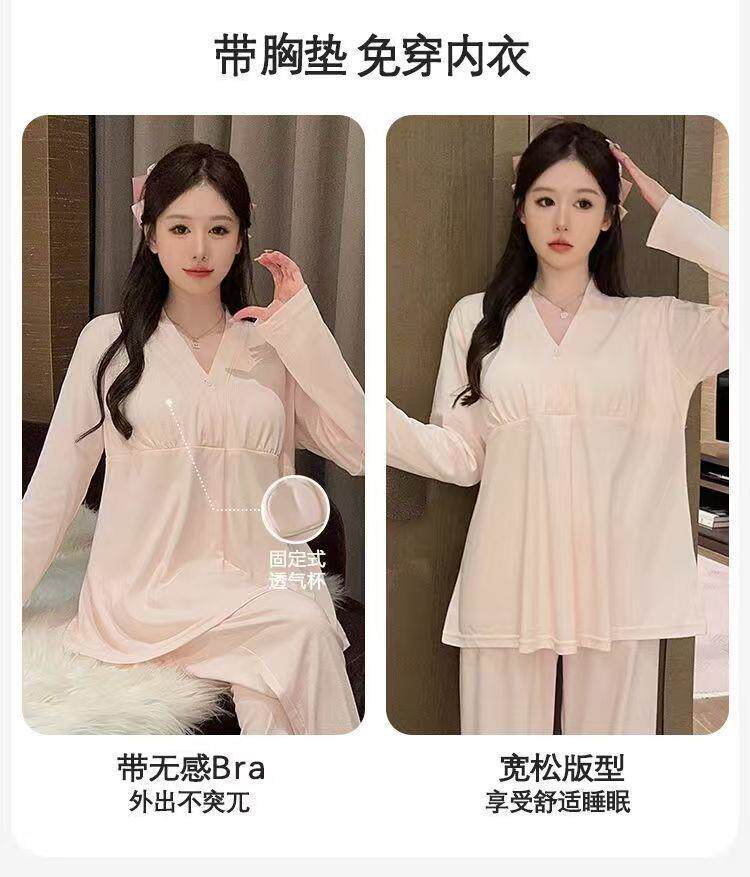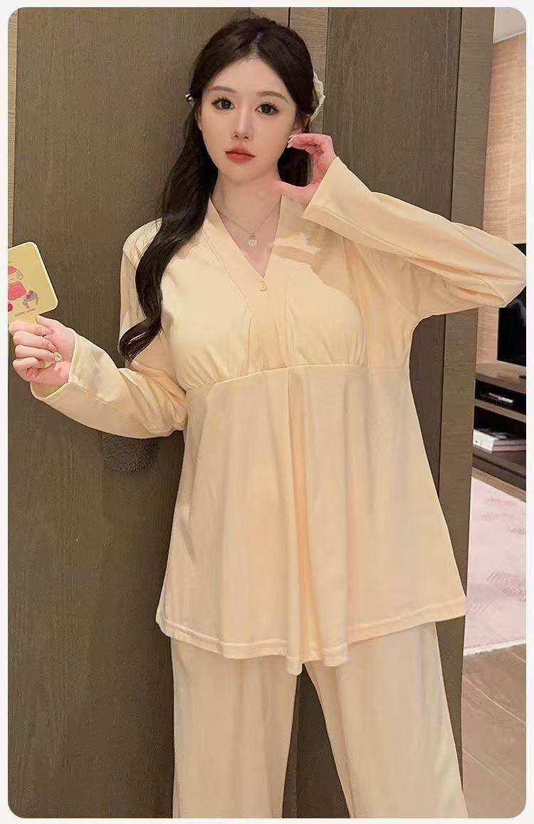 跨境带胸垫月子服春秋产后5月份棉产妇哺乳孕妇睡衣6夏季薄款家居
