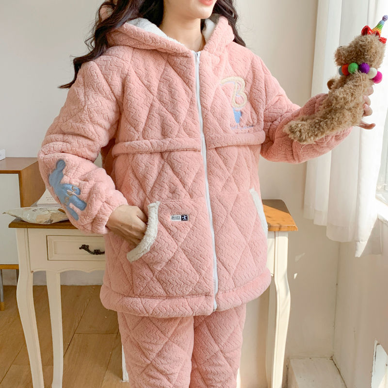 新款月子服秋冬产后12月份珊瑚绒孕妇睡衣冬季加厚哺乳大码家居服